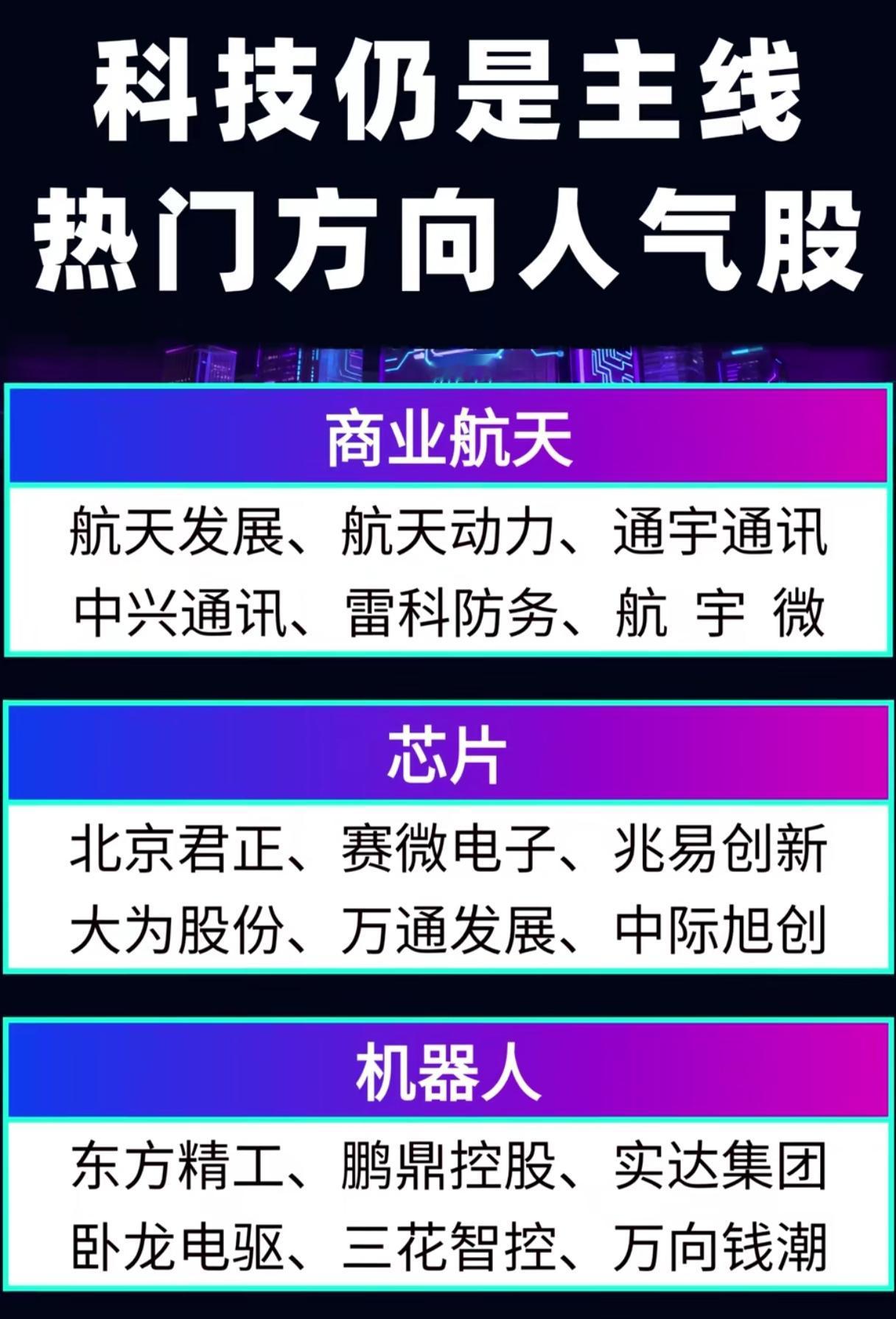 科技主线里,哪些人气股正踩中“产业爆发点”? 这帮玩科技的确实精得很。当散户还在纠结该追AI还是捧新能源,人家早就蹲在产业链的必经之路上收过路费了。就像挖金矿时代,最稳赚的不是淘金客,而是卖铲子的买卖。 航天动力现在抖起来了。以前造火箭发动机纯烧钱,现在可好,赶上低轨卫星放卫星跟下饺子似的。马斯克的星链计划要打四万颗卫星,国内也得跟进,火箭发动机顿时成了硬通货。这就像突然发现家里祖传的腌菜坛子是元青花,眨眼变香饽饽。 通宇通讯更会卡位。趁着华为苹果都在搞卫星通话,赶紧给手机厂商供应天线。以后咱们深山老林里刷短视频,都得靠他们家的天线撑场面。这买卖比开5G基站还划算,毕竟天上又不用征地拆迁。 北京君正这帮搞芯片的算是押对宝了。现在智能汽车跟手机似的隔年就换代,车载存储芯片需求噌噌涨。特斯拉一辆车要用150颗芯片,比传统汽车多三倍,这帮供应商躺在生产线数钱就行。 中际旭创玩得最绝。AI火起来需要算力,算力得要光模块,他们家的800G产品直接成战略物资。就像当年美国西部淘金热,最发财的是李维斯牛仔裤——不管谁挖到金矿,都得先买条裤子穿。 其实看明白没?这些踩中点的公司有个共同套路:专找那种“国家必须搞、市场等着要”的环节蹲守。好比知道明年必发大水,提前去河道转弯处张好渔网。 各位读者你们怎么看?欢迎在评论区讨论。科技股行情分析 科技股行情 股市科技板块