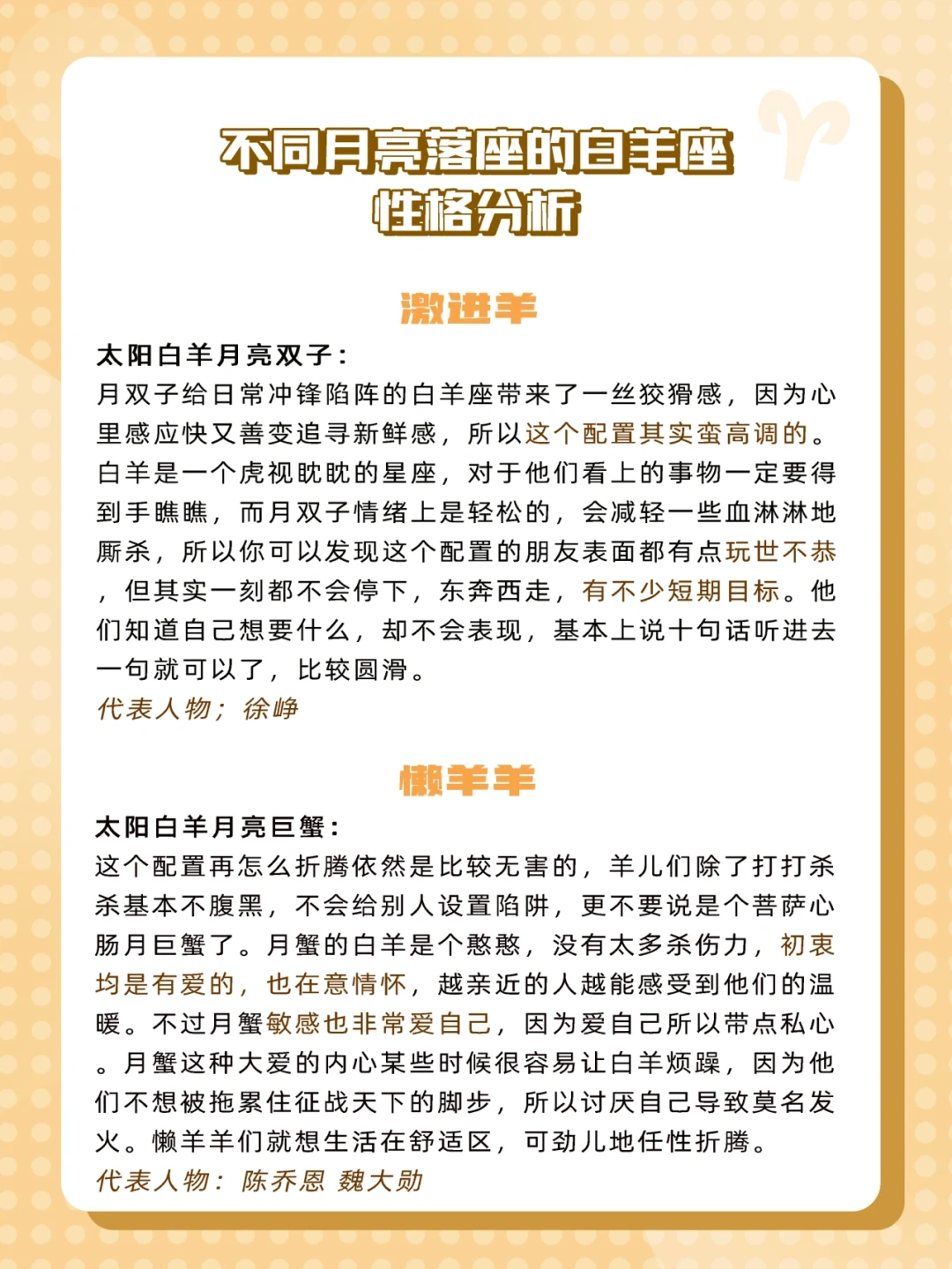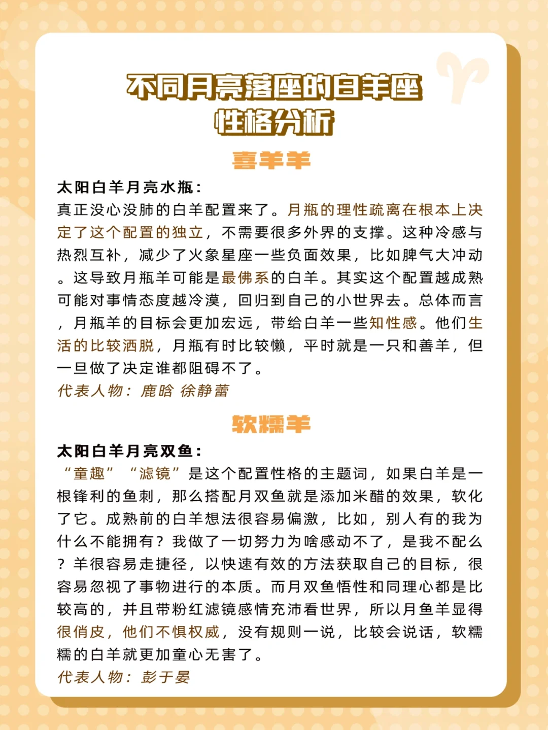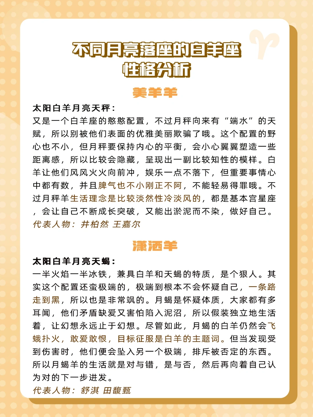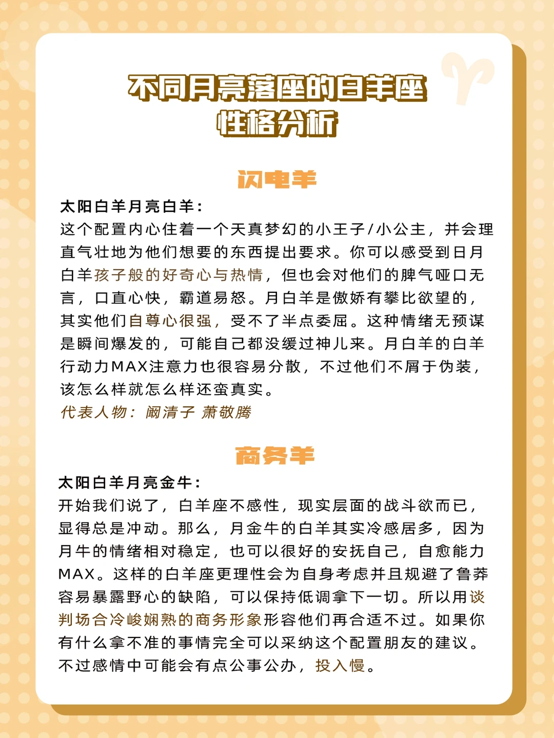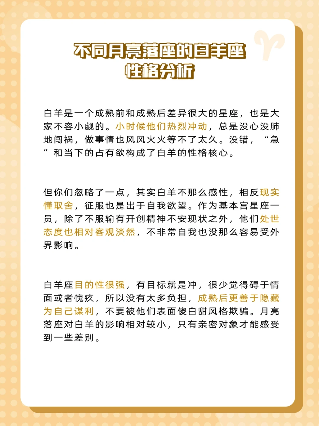 现在让我们来看看不同月亮星座的白羊会呈现什么样的性格吧🐑
