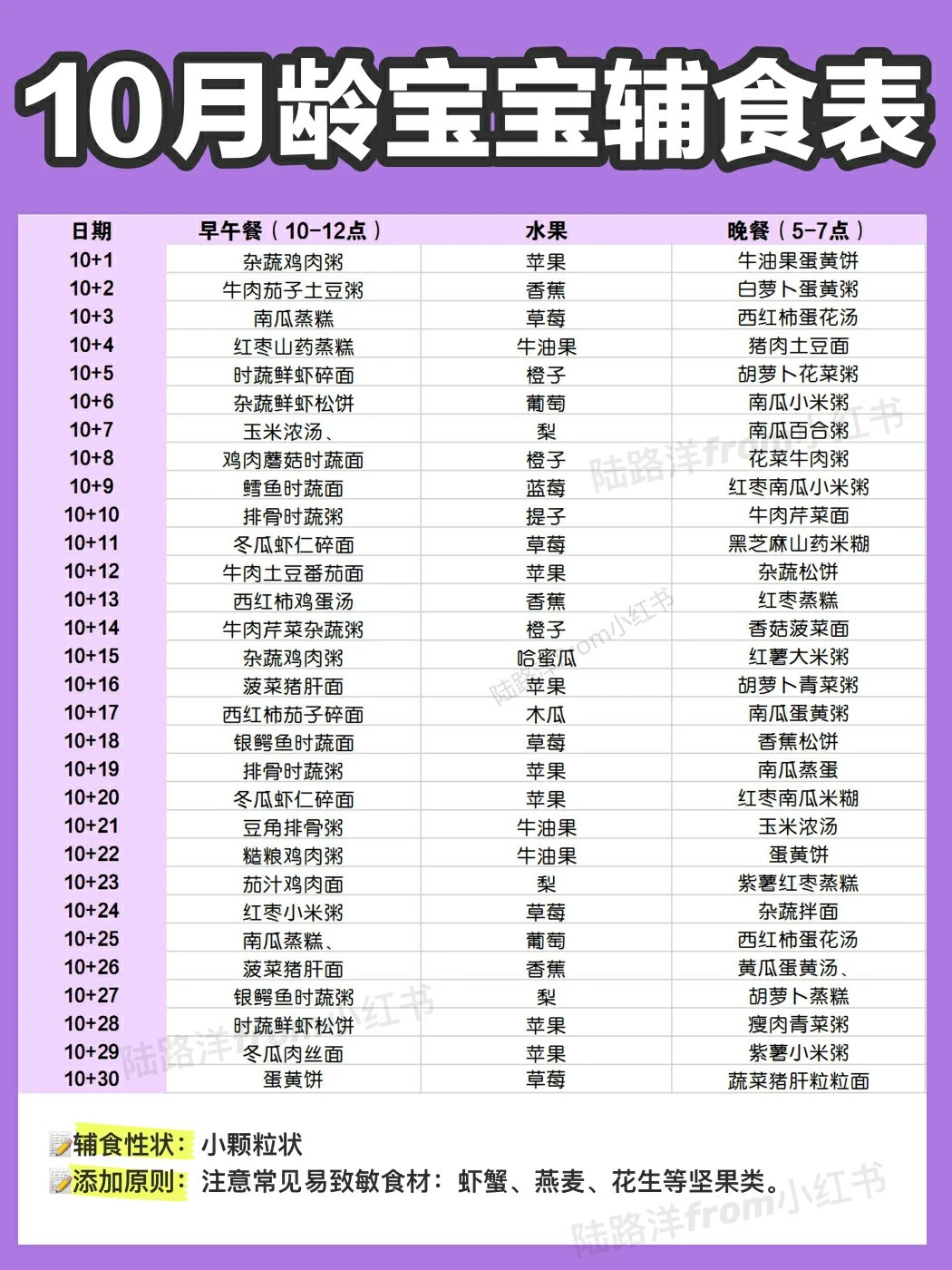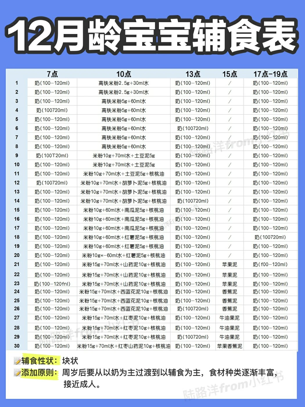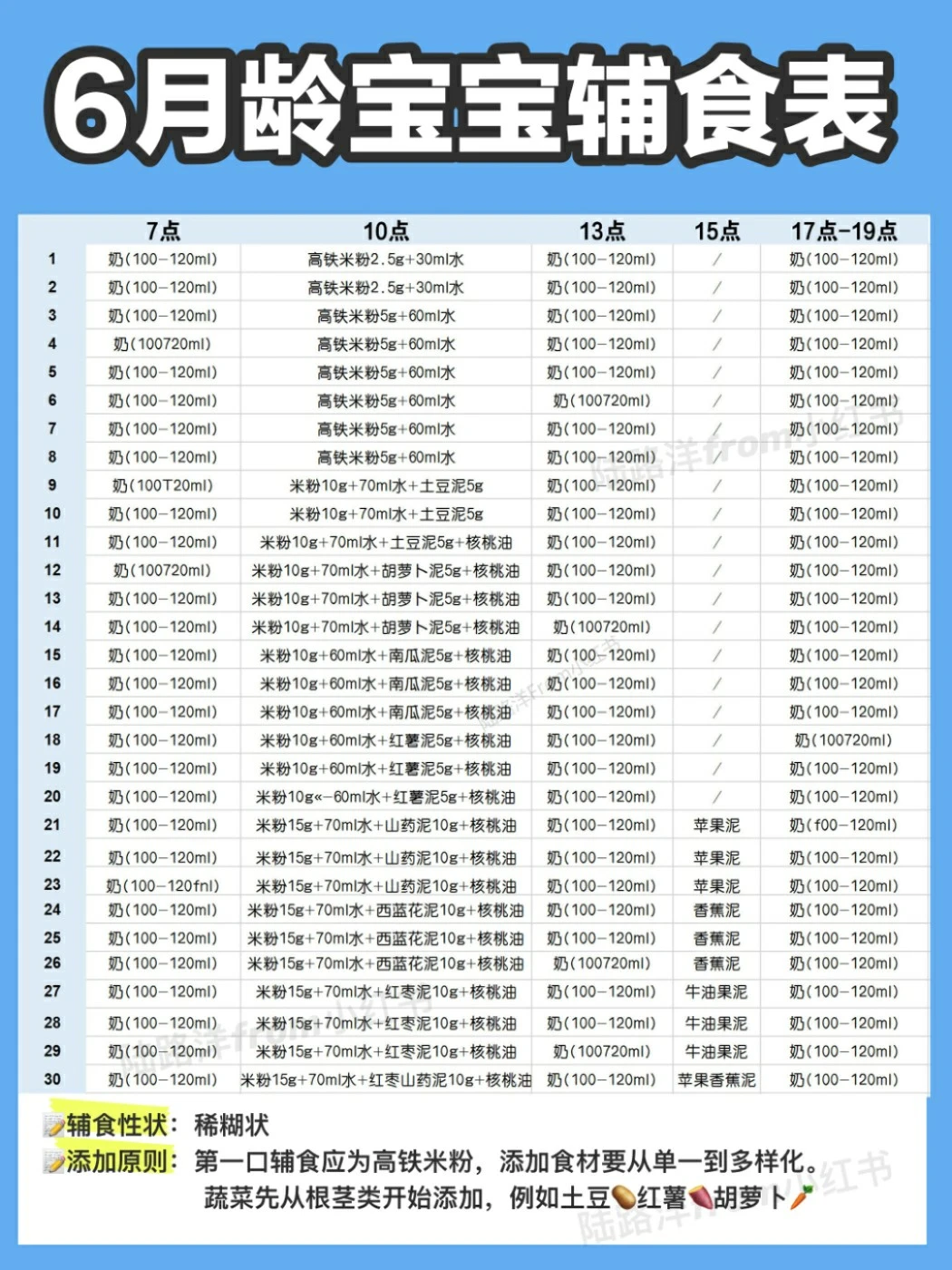 分享6-12月龄宝宝辅食表,给姐妹们参考一下,希望帮到有需要的宝妈