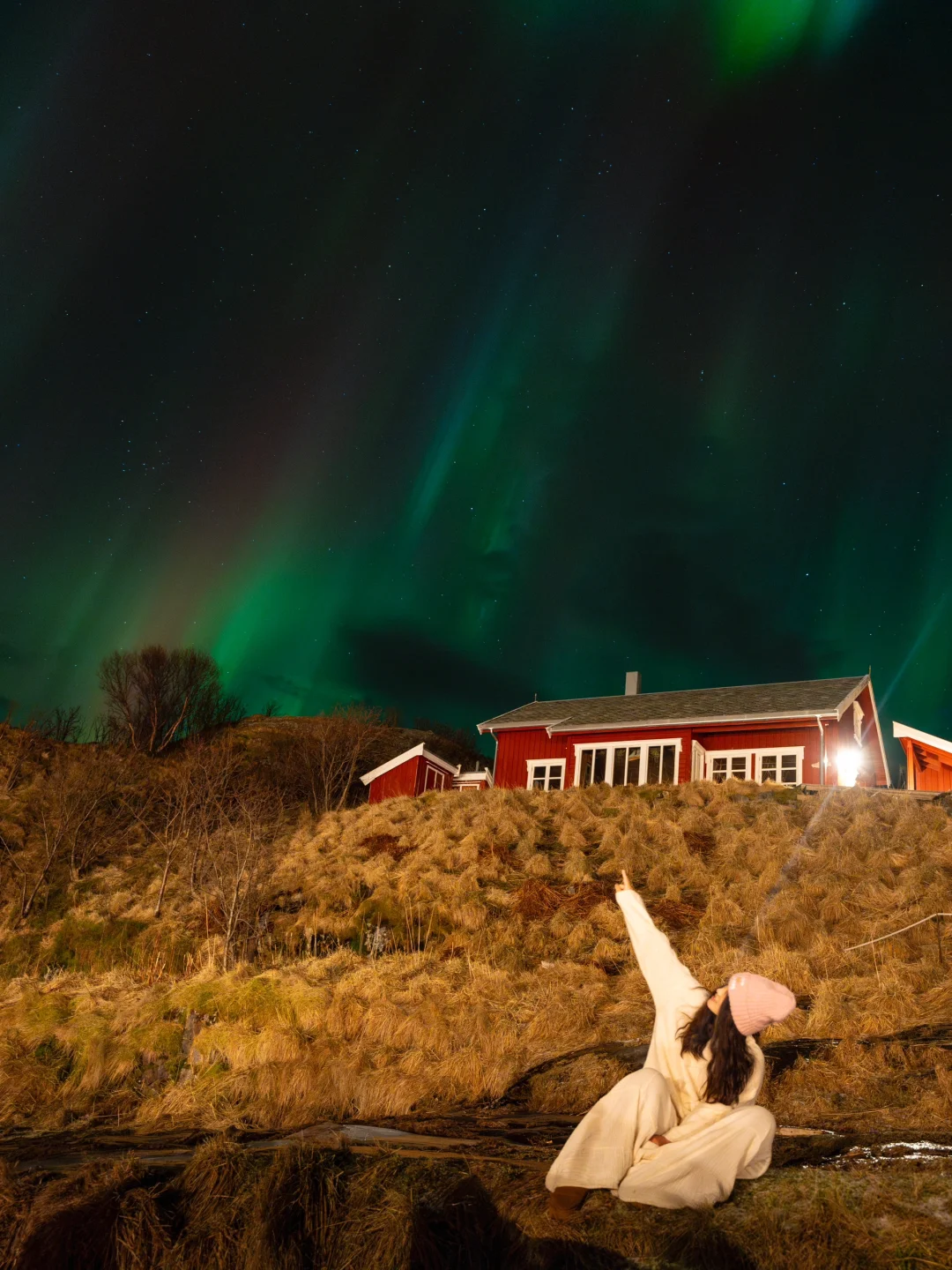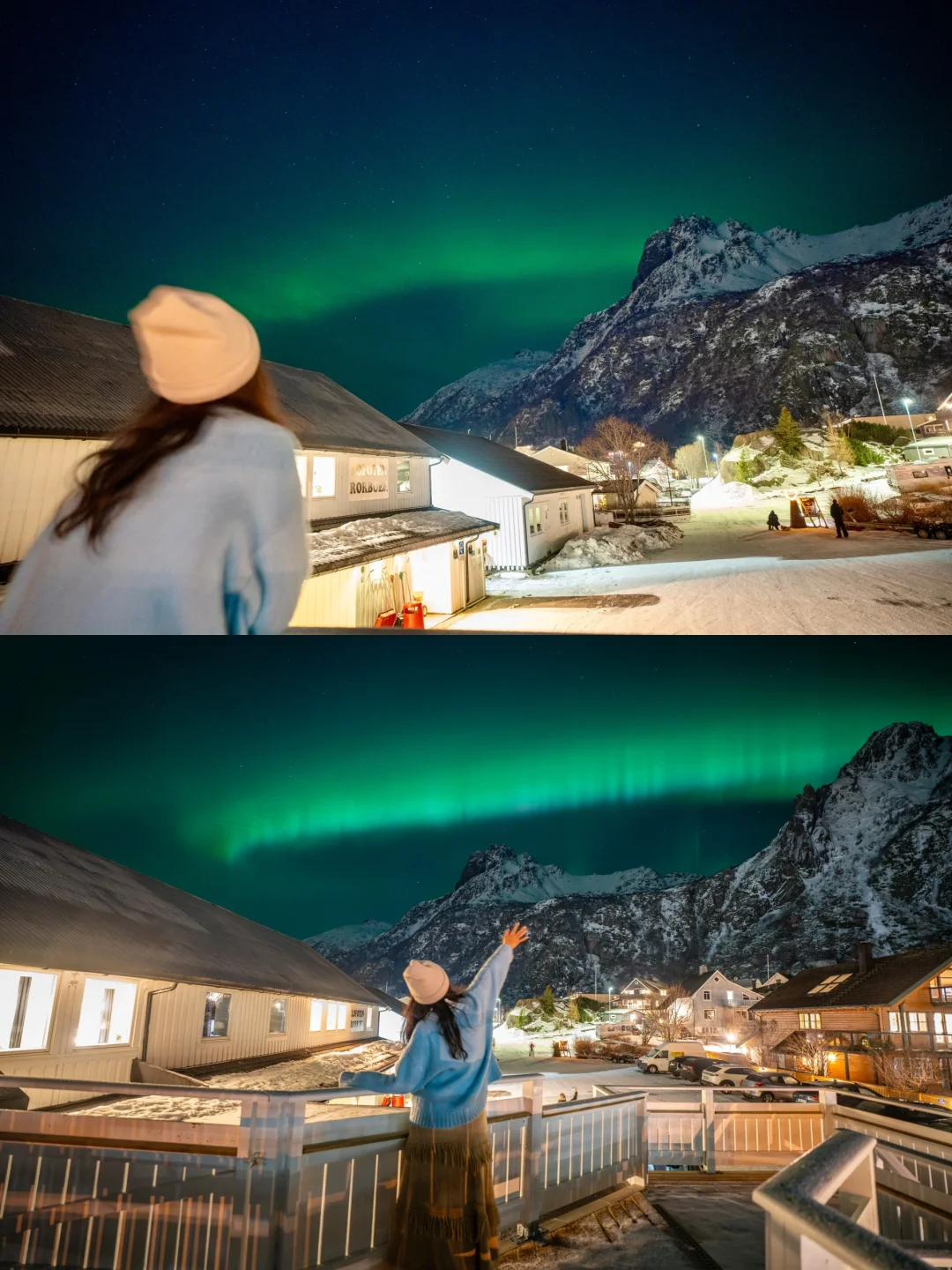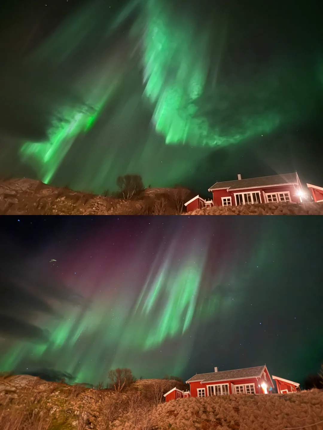 最难能可贵的是,挪威那几天晚上的温度也很舒适,基本上0度左右,在民宿门口就能看极光,也不用穿很多衣服挨冻🥹