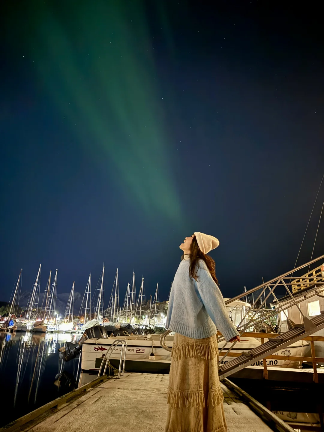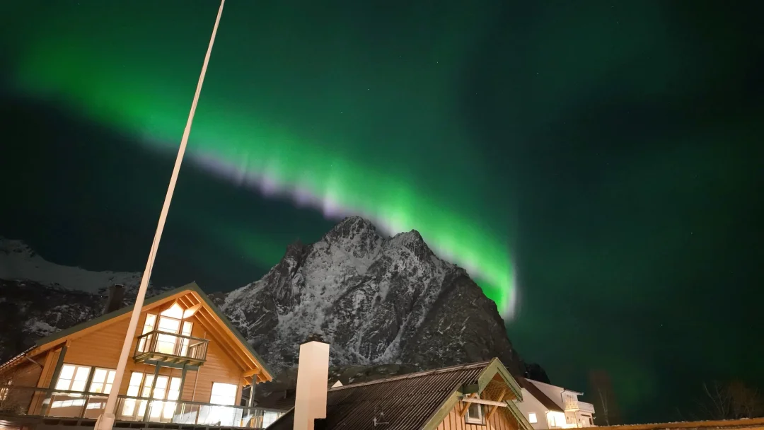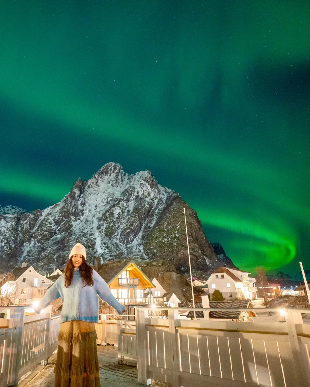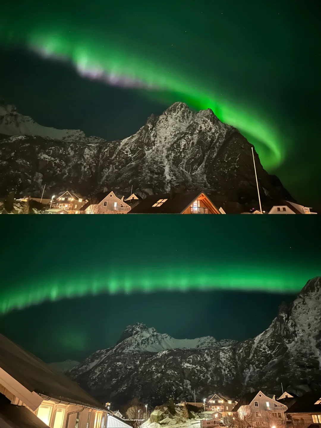 最难能可贵的是,挪威那几天晚上的温度也很舒适,基本上0度左右,在民宿门口就能看极光,也不用穿很多衣服挨冻🥹
