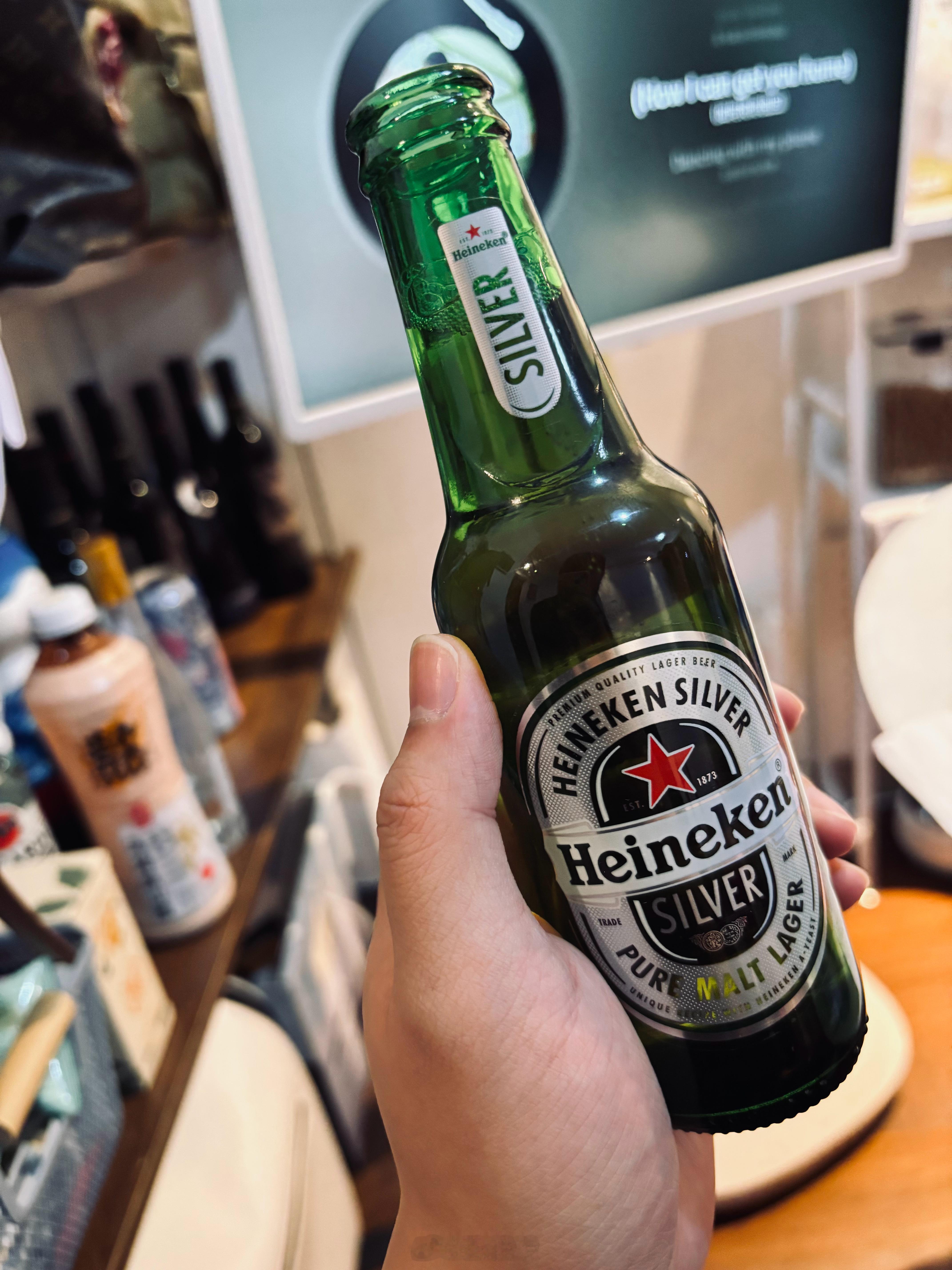 本来今天戒酒的,顶不住超市一瓶1.2块的巨大折扣,你看看优惠力度上来是不是就不看品牌了,我这么不喜欢喜力的人。