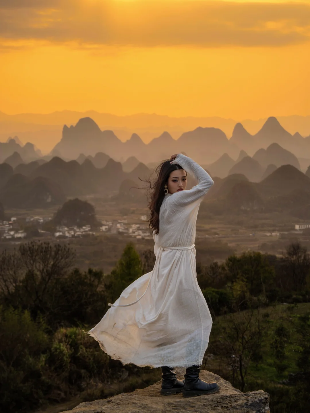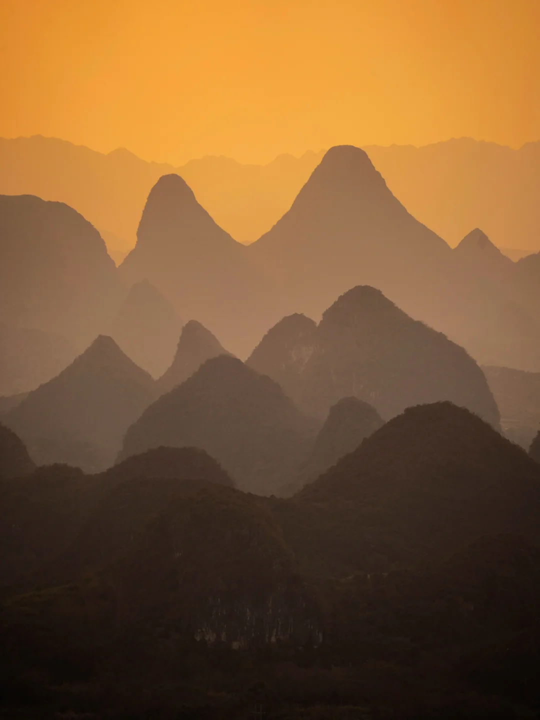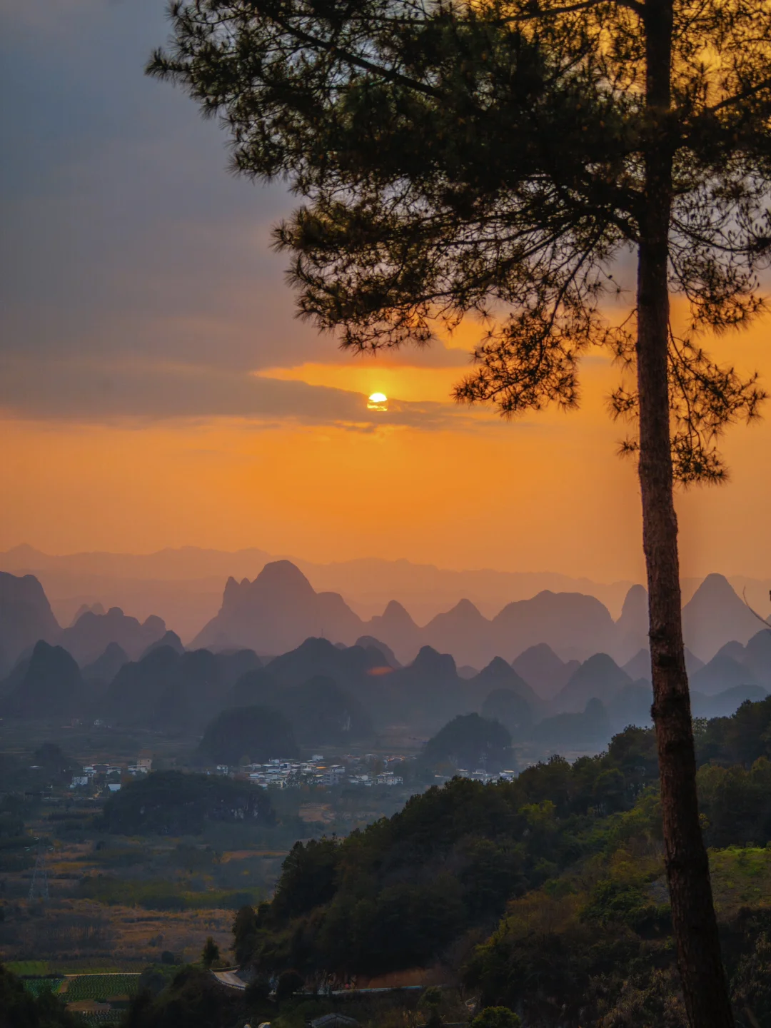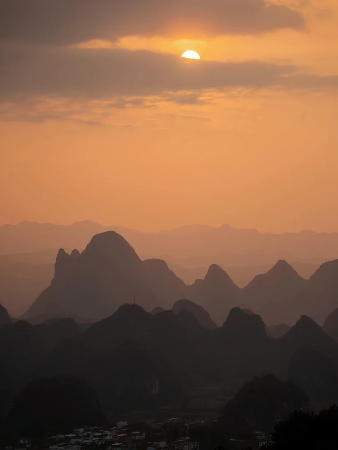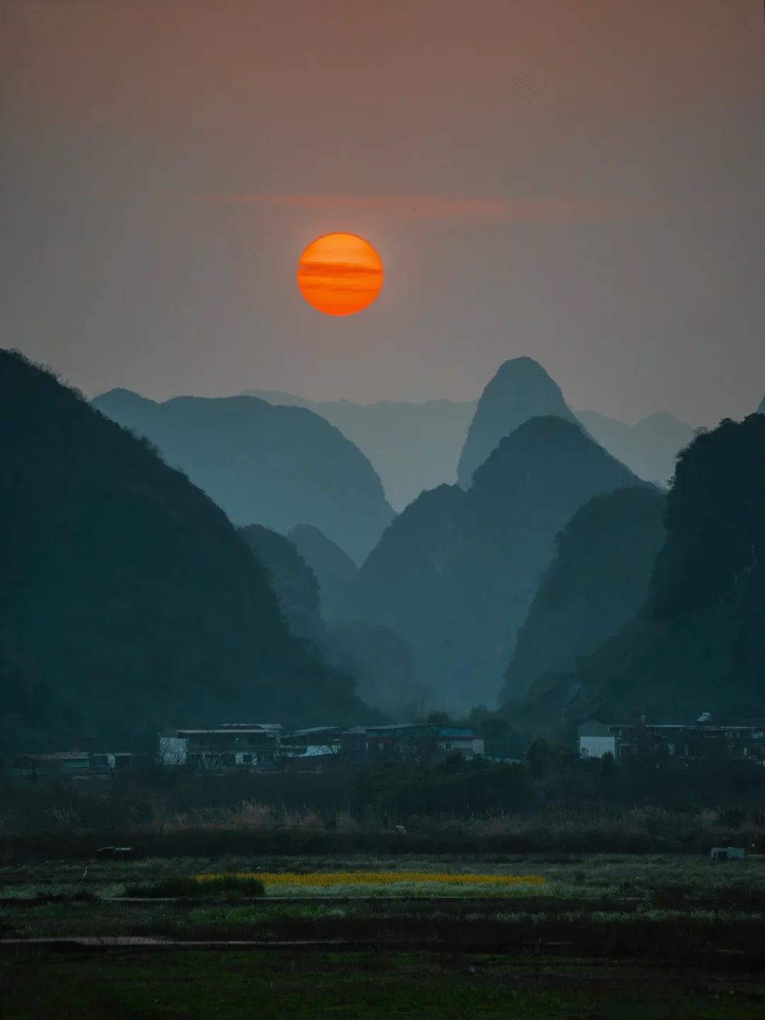 终于懂了宋画里的留白与诗意!阳朔的山水,像一幅天然的水墨画卷,而我在这里拍到了现实版的千里江山图,江山如画! ◾️打卡攻略 📍拍摄于广西,阳朔,千里江山图打卡地 可直接导航【千里江山图大型水墨画打卡地】距离阳朔约40分钟车程,快到山顶上需要提前停车,再走一截盘山路上去。 ⏰最佳时间: 提前看当天日落时间,日落前40分钟到达拍照等待 📷 记得带长焦,可以拍出山水错落有致层峦叠嶂的氛围 没有人能够拒绝这样的中式写意山水吧[皱眉R]