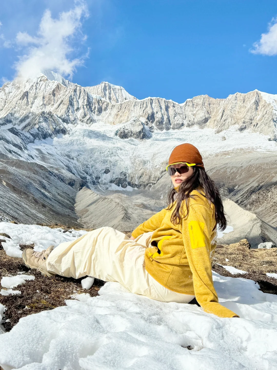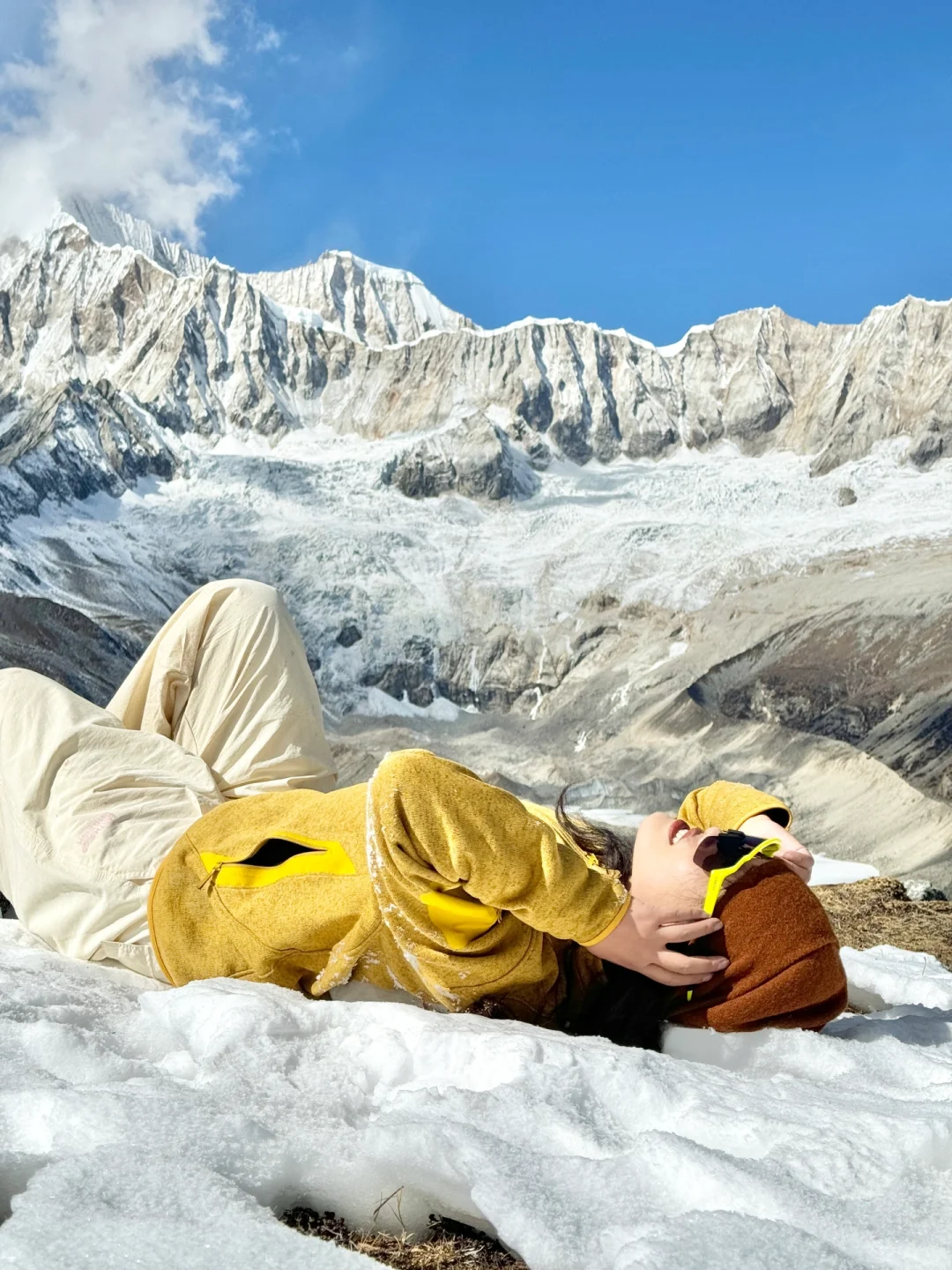 开到尽头有个停车场,停车后朝着雪山的方向徒步约1h