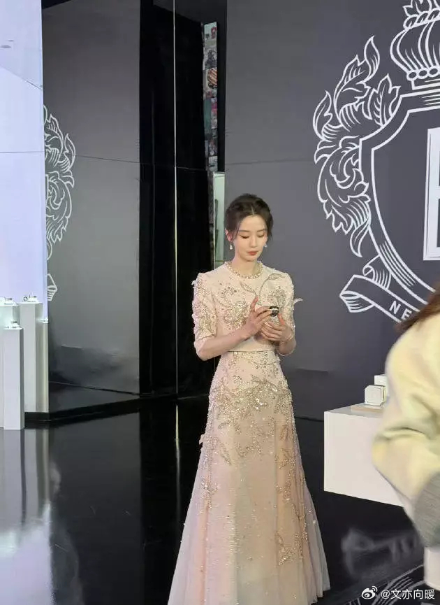 文亦娱乐刘诗诗身穿粉金色长裙勾勒好身材 浅浅微笑大气迷人