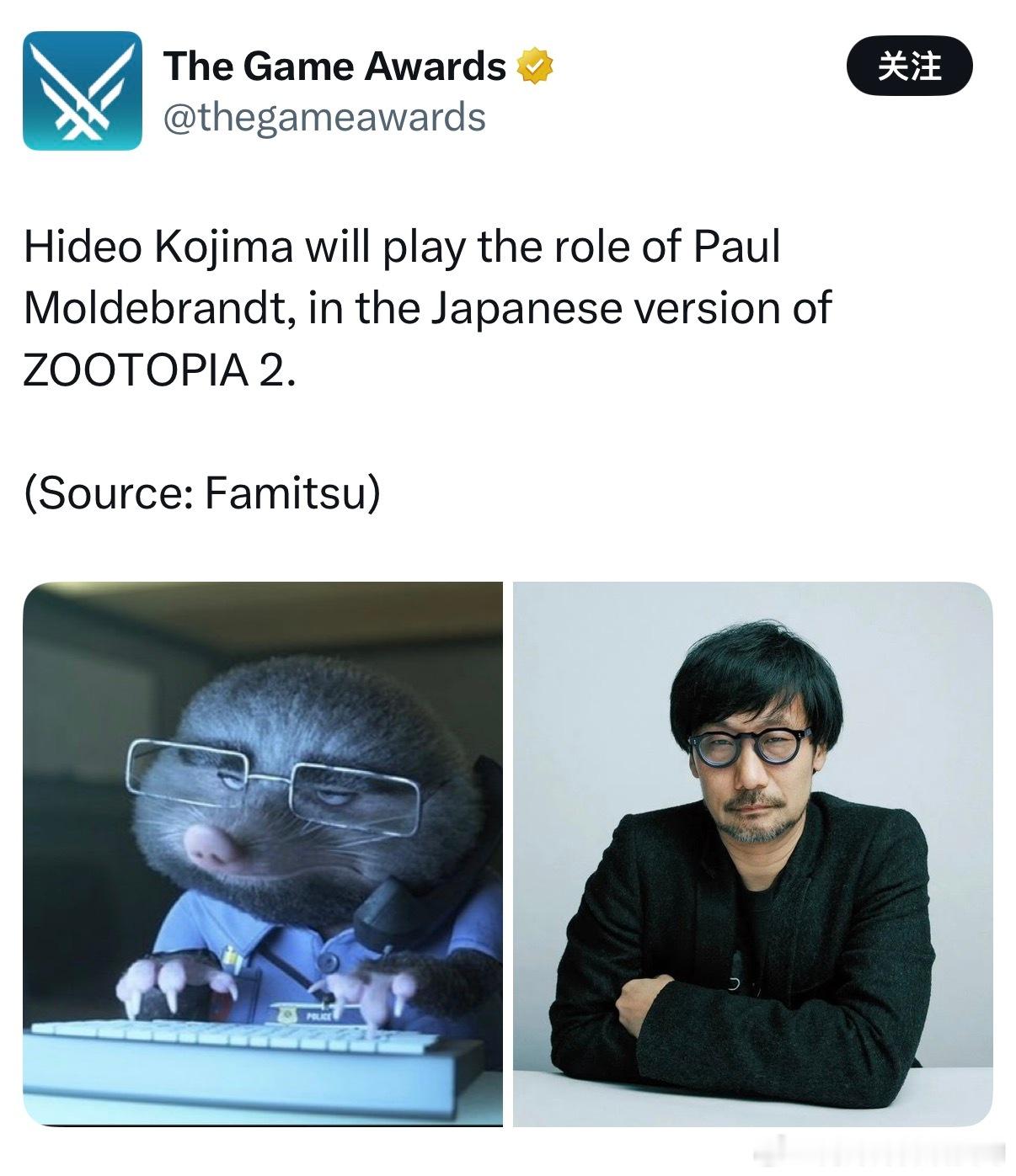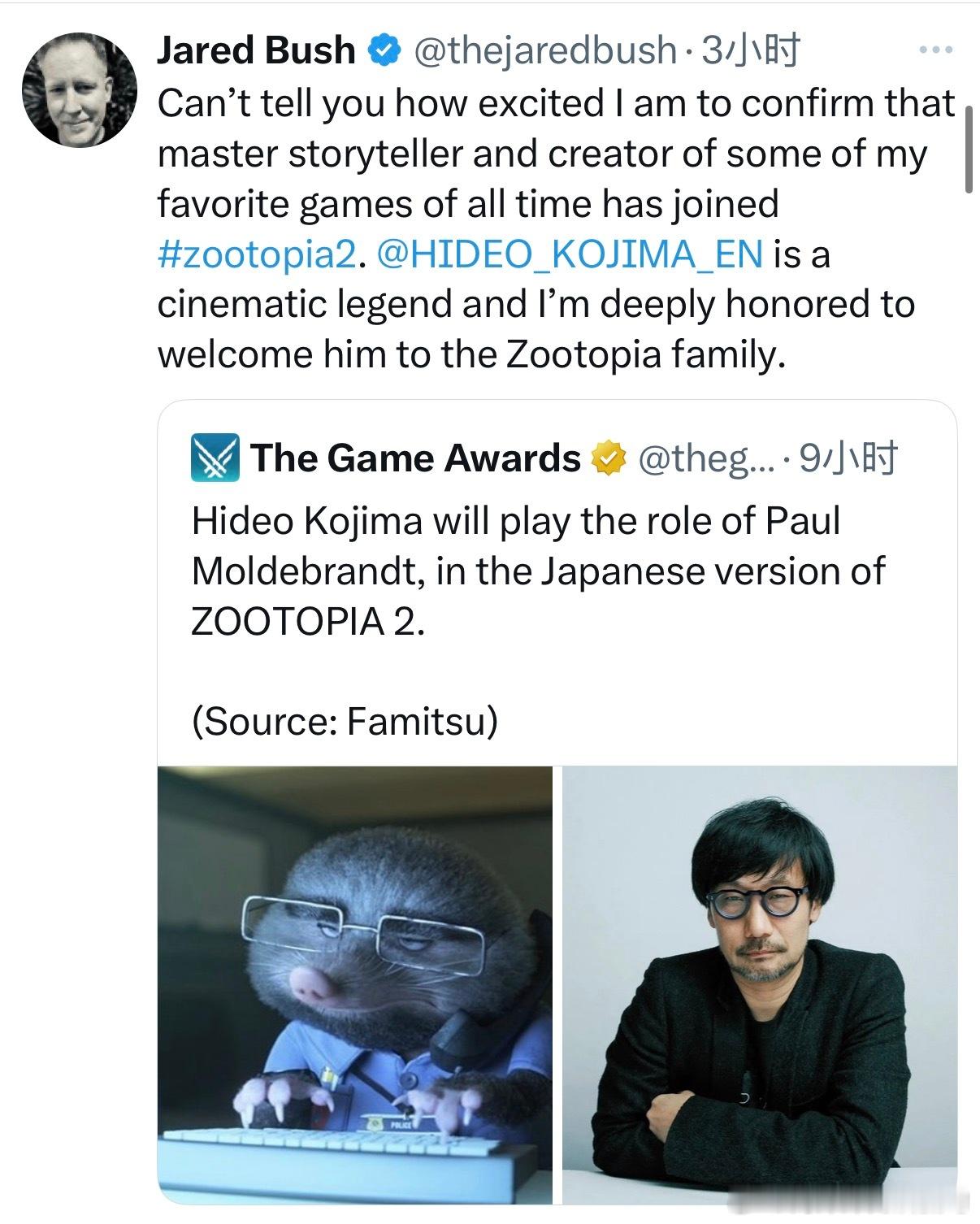小岛秀夫要在《疯狂动物城2》给鼹鼠警官保罗配音,还是电影导演杰拉德·布什亲自邀请的 疯狂动物城跨年电影愿