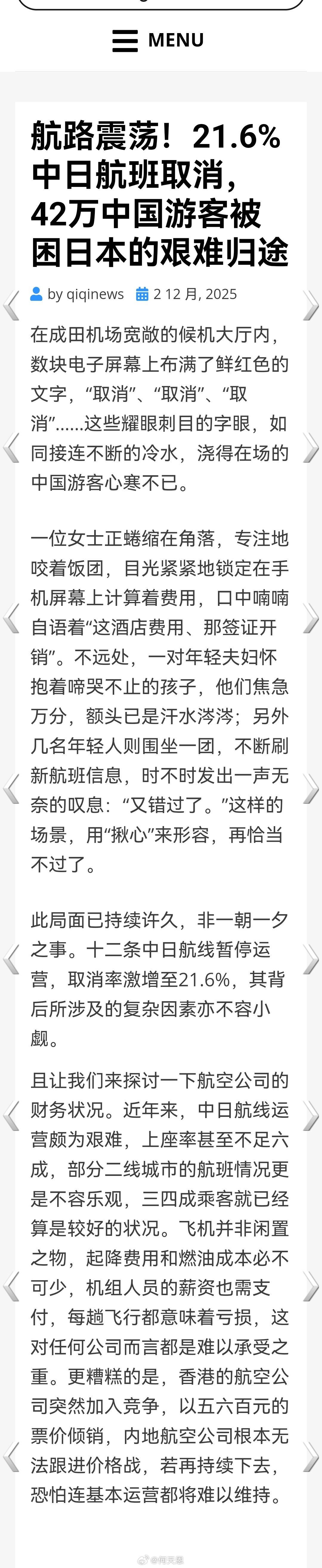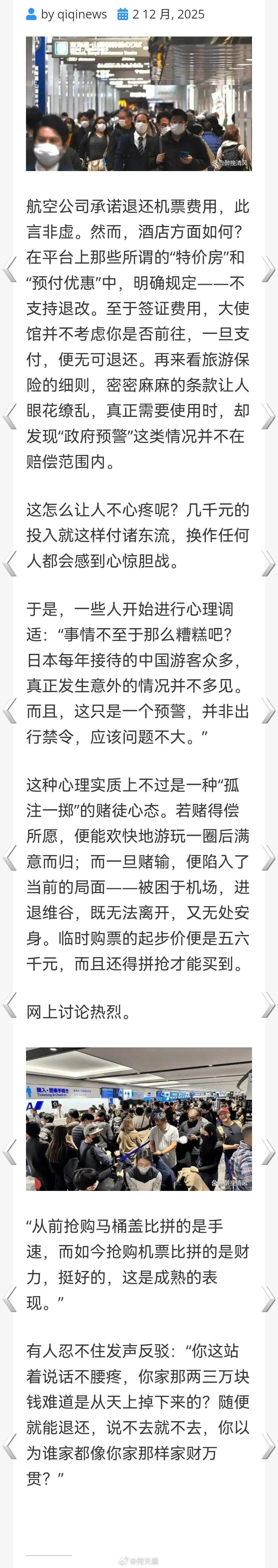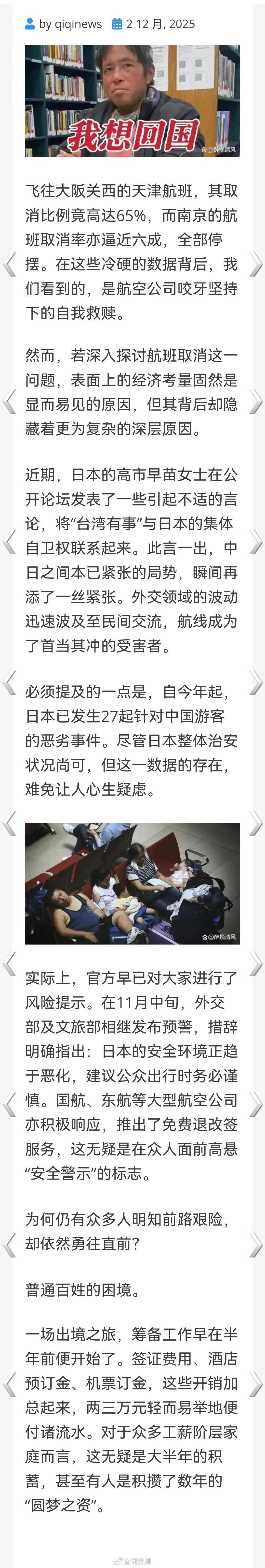 航路震荡!21.6%中日航班取消,42万中国游客被困日本的艰难归途!!台湾一旦沦为战场什么都是空谈海外新鲜事何天恩