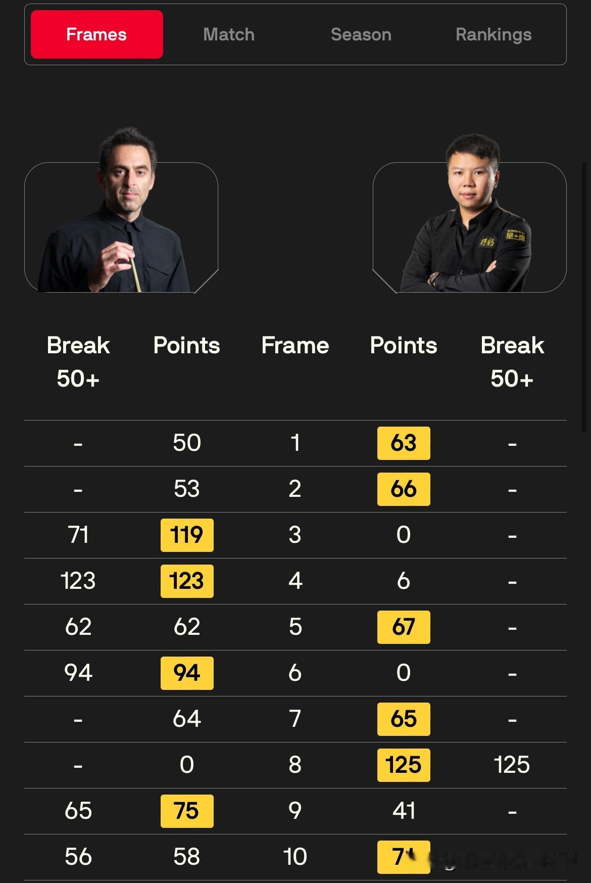 斯诺克英锦赛爆出最大冷门,周跃龙职业生涯首次战胜奥沙利文! 资格赛选手周跃龙全场只打出一杆125分,但凭借多局最后时刻逆转,以6比4战胜这位八届英锦赛冠军得主,经历了9次对决,职业生涯终于取得了对阵奥沙利文的首场胜利。 奥沙利文赢了数据输了比赛,全场5杆50+和一杆123分,比赛过程简直是在喂球给周跃龙,他把球直接送到袋口附近,让周跃龙轻松入袋,我都数不清他到底做了多少次这样的操作。 最后一局简单的黄球简直难以置信,打进后还给自己做了一个斯诺克,然后让周跃龙轻松清台。在我看来,奥沙利文的目光似乎都游离在世界其他地方,似乎根本不在乎输赢实在都看不下去了,他打得太糟糕了! 周跃龙将在16强赛中对阵塞尔比,后者以6比2淘汰了雷佩凡。