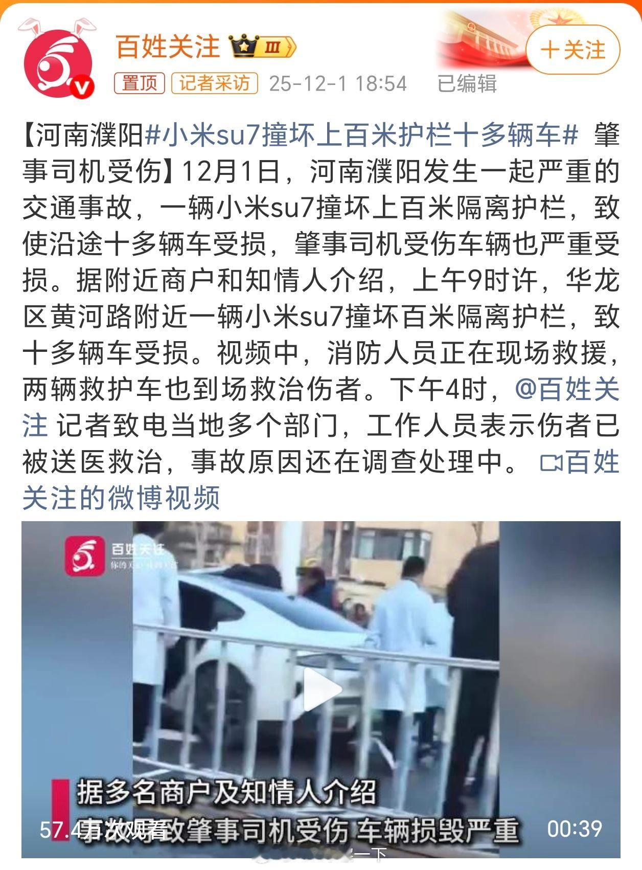 小米su7撞坏上百米护栏十多辆车还是那句话,不管什么车,只要你在公共道路开就必须得注意安全,千万别图快,任何品牌都是这样,在评论区引战搞对立的都该杜绝。