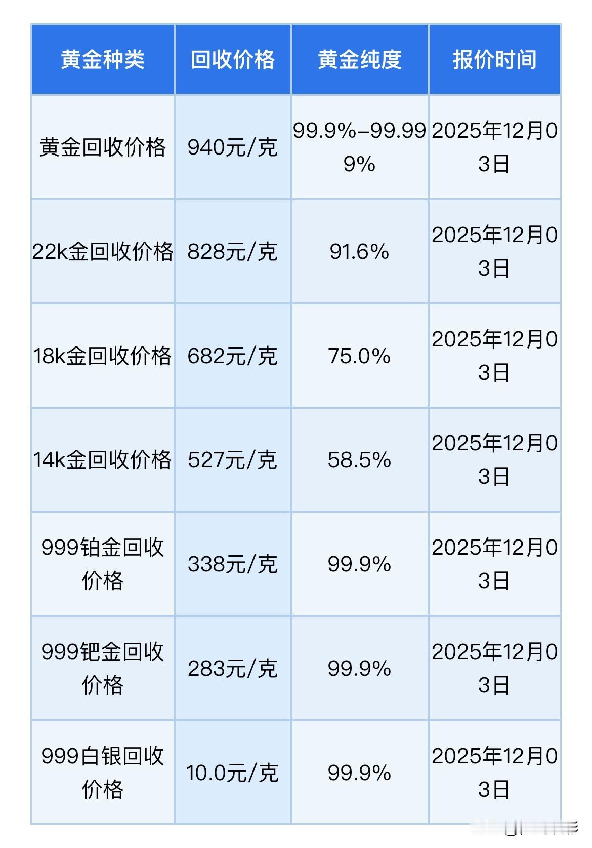 炒金的快看, 12月3号黄金回收价格查询,与黄金回收注意事项! 今日黄金行情, 现在黄金回收价格940元/克, 22k黄金回收价格828元/克, au900黄金回收价格828元/克, 18k黄金回收价格682 元/克, 14k金回收价格527元/克。 黄金回收注意事项: 1、黄金回收的价格是根据实时金价来定价的,也是行情价格,报价高于实时黄金行情价格的当心有套路。 2、黄金回收前可以先了解其克数。 3、黄金回收是没有折旧费的,新旧黄金的回收价格一样。 4、发票或者收据只是证明黄金的合法来源,并不影响到黄金回收价格。 金价回收行情 黄金售卖价格 黄金回收价攀升 黄金一克720 黄金回收价