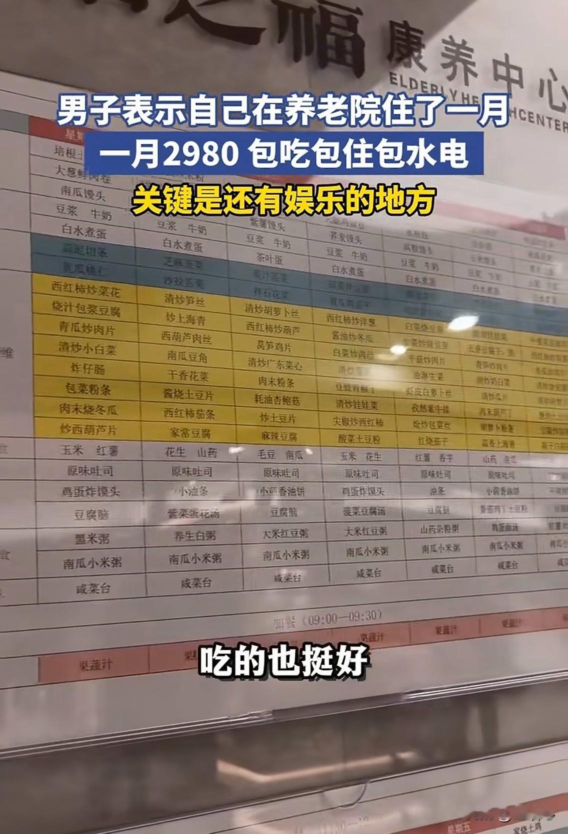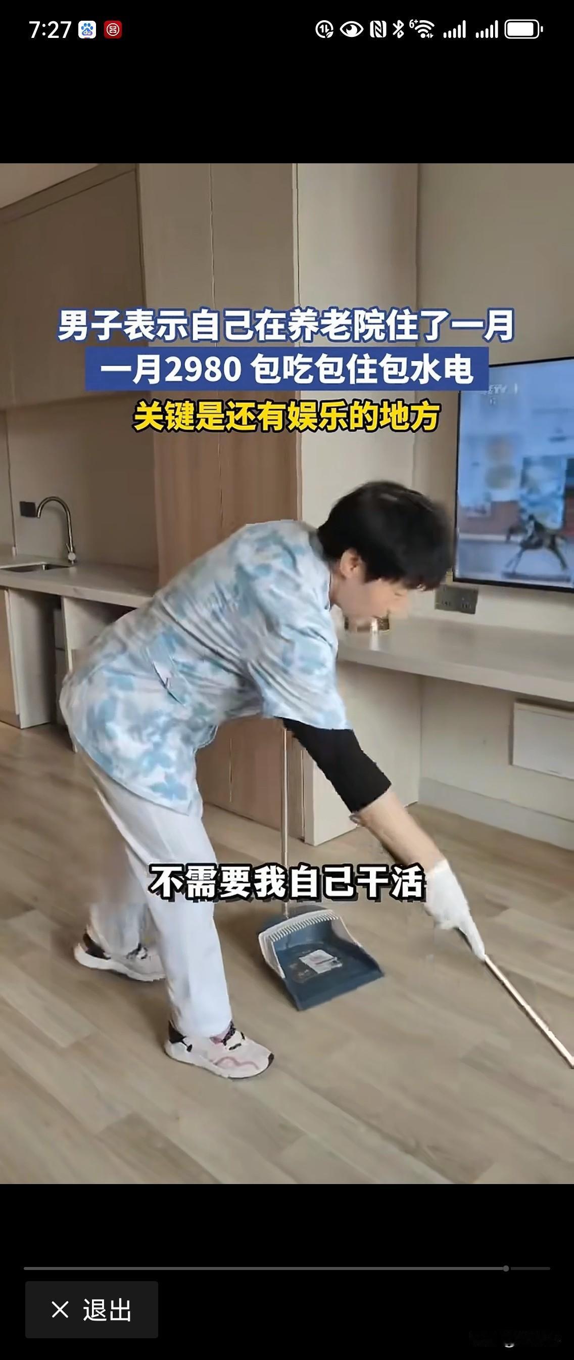 [碰拳]第一位吃螃蟹的人堪称勇士! 山西一位年轻人对养老院的生活很满意,每月2980元,包一日三餐、水电费和网络费。每天还有人来清洁房间。 现在是老年人不愿意进养老院,年轻人倒是愿意去养老院尝试。有网友建议:不如住进宾馆,加上三餐每月才3000左右,也有网友说:长期和老人住在一起,会老得很快! 还有网友建议每天和老人家打打麻将可以赢百把块钱,住宿费也省了。 你认为这位年轻人的选择是否明智呢?