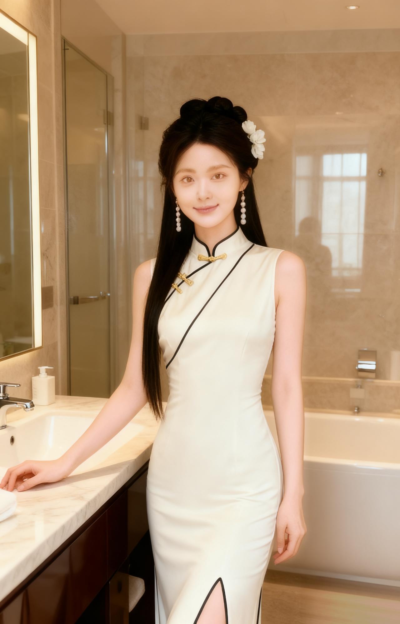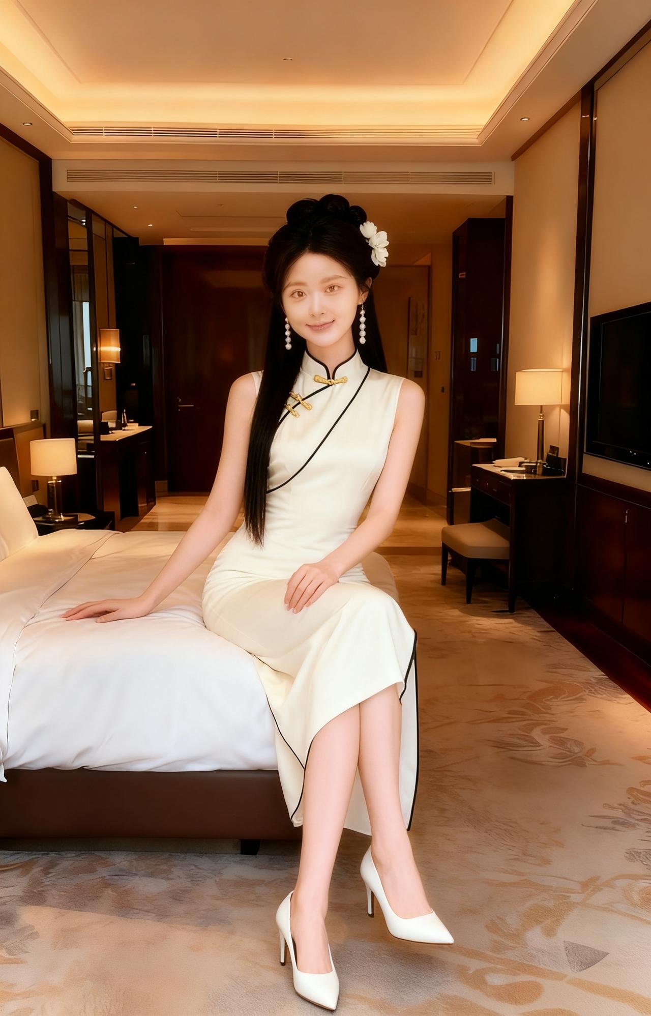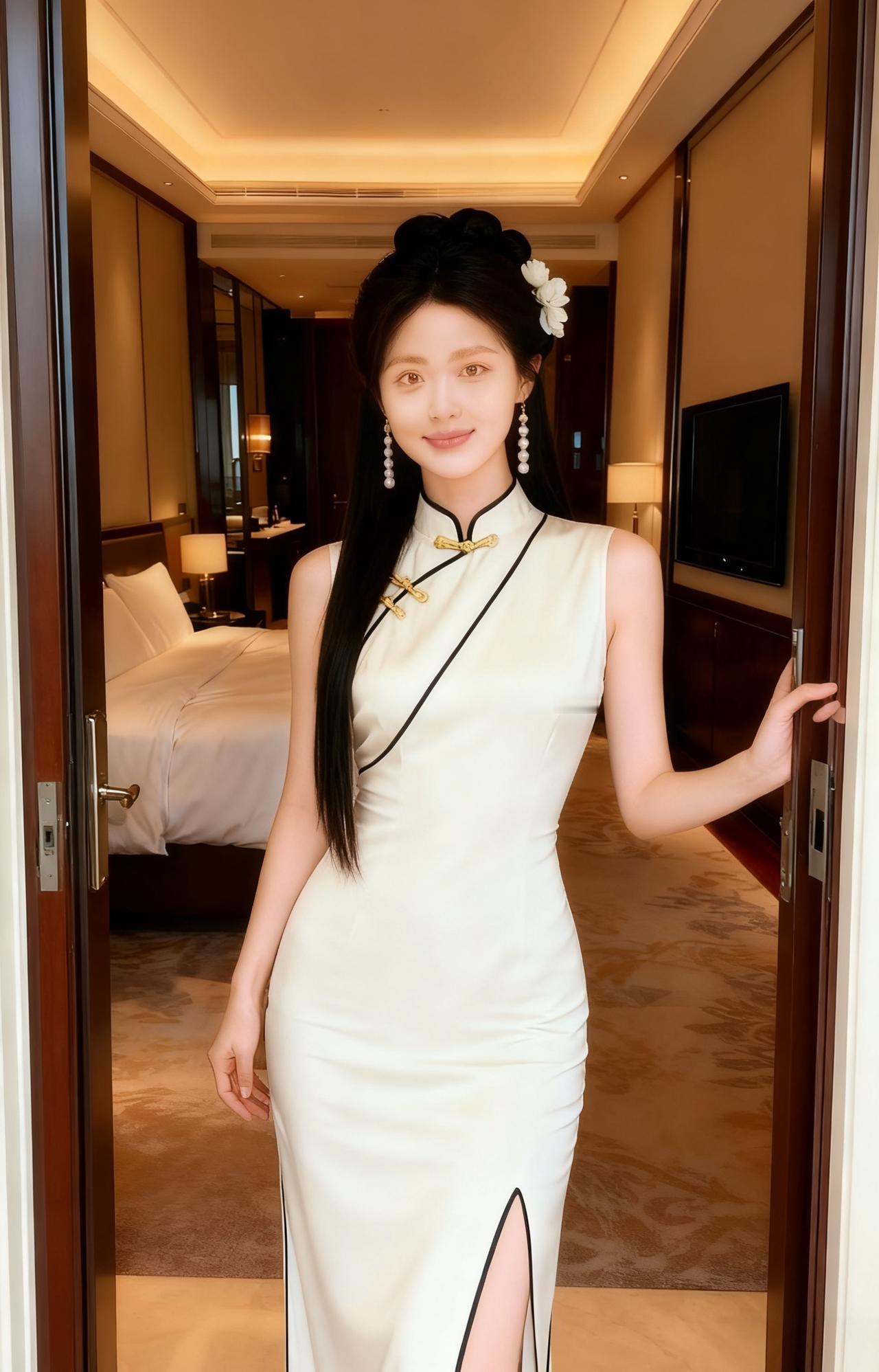短袖紧身长裙,旗袍设计,修身款式。优雅庄重,气质超然!