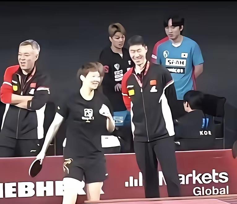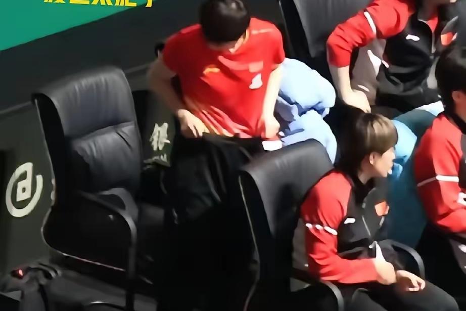 曼昱单打结束不仅穿错裤子还犯迷糊外套也找不到了。她站在椅子边翻着衣服,坐在前排的王楚钦看到,用手指着衣服,曼昱歪着头看着王楚钦……,王楚钦站起身拿走挡住曼昱的衣服,对着曼昱笑笑似乎说:‘’你的衣服在这叫你呢?‘’ 没想到王楚钦这么细心,记着曼昱的外套压在队友外套的下面。 有时看王楚钦傲气,其实他人挺热心的,不仅对莎莎的事情上心,对曼昱同样关心,姐弟三人一路走来关系一直很好。
