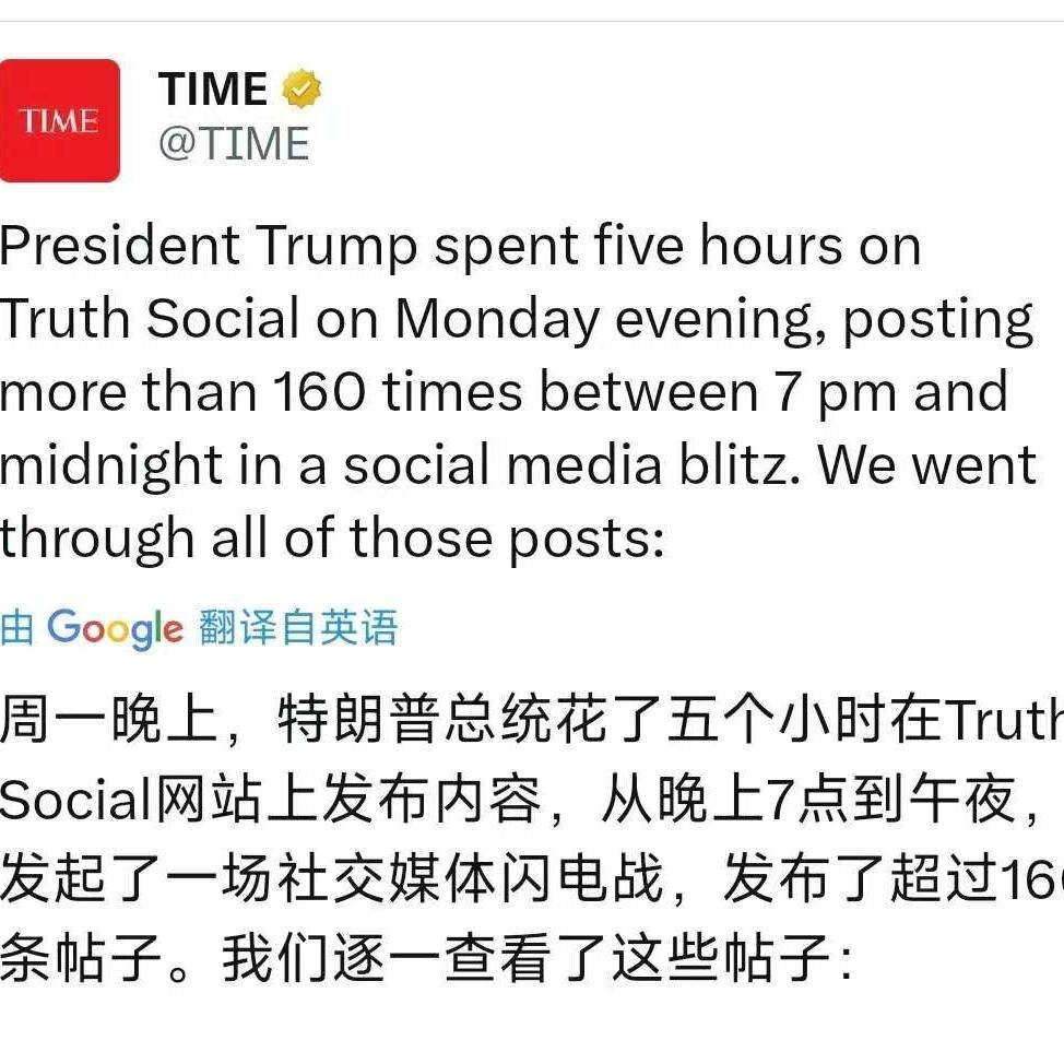 12月3日,美媒报道:“周一晚上,特朗普总统花了五个小时在真相社交Truth Social网站上发布内容,从晚上7点到午夜,发起了一场社交媒体闪电战,发布了超过160条帖!” [机智]特朗普深夜5小时狂刷160条帖,比打工人赶KPI还拼!治国精力全花在舆论造势上,这社交闪电战瞬间变成转移视线大赛!Truth Social成特朗普熬夜主战场,160条帖堪比流水线产出,与其说是沟通选民,不如说是用刷屏掩盖实在没正事可干!前有P图甩锅,后有深夜刷屏,特朗普的精力从不用在正道,160条帖的高产,不过是煽动情绪的老套路罢了!
