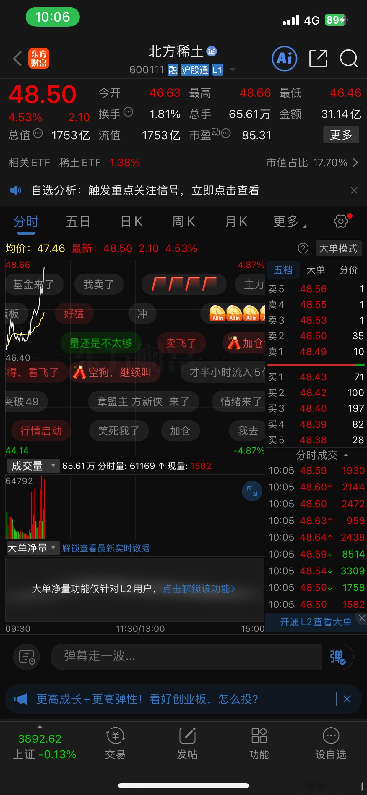 北方稀土起飞信号敲定!日内大涨近5%突破48元,三季报净利暴增280%,政策护航+需求爆发,稀土龙头涨势已启动!