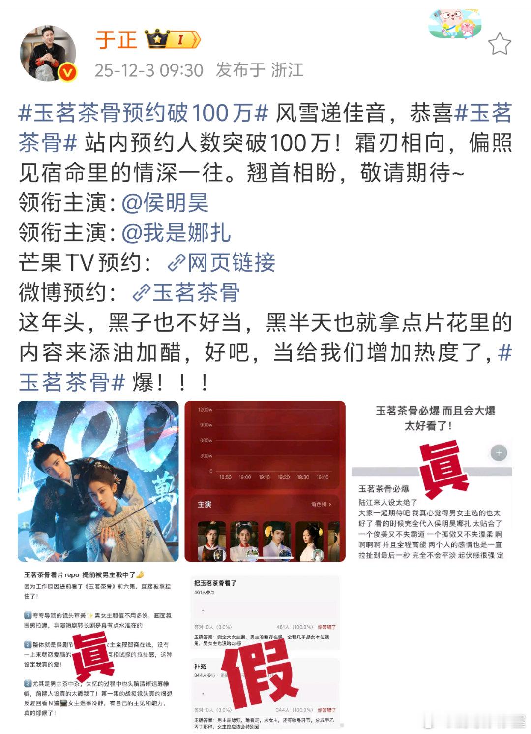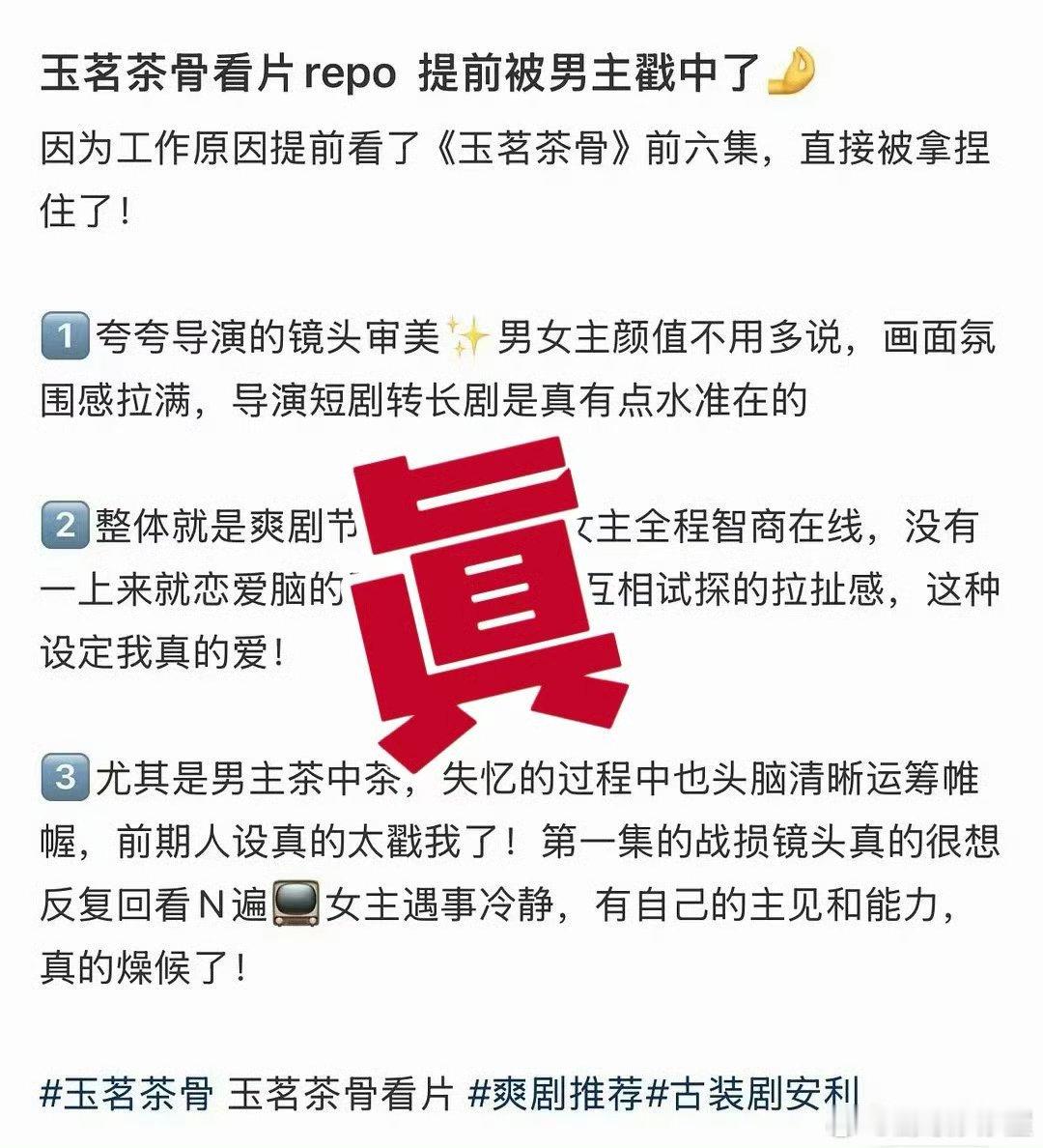 于正辟谣了网传《玉茗茶骨》看片repo,打假的是说完全大女主剧的repo,认可了说《玉茗茶骨》好看、大爆的repo不过看起来真的蛮有看点的于正辟谣玉茗茶骨看片repo