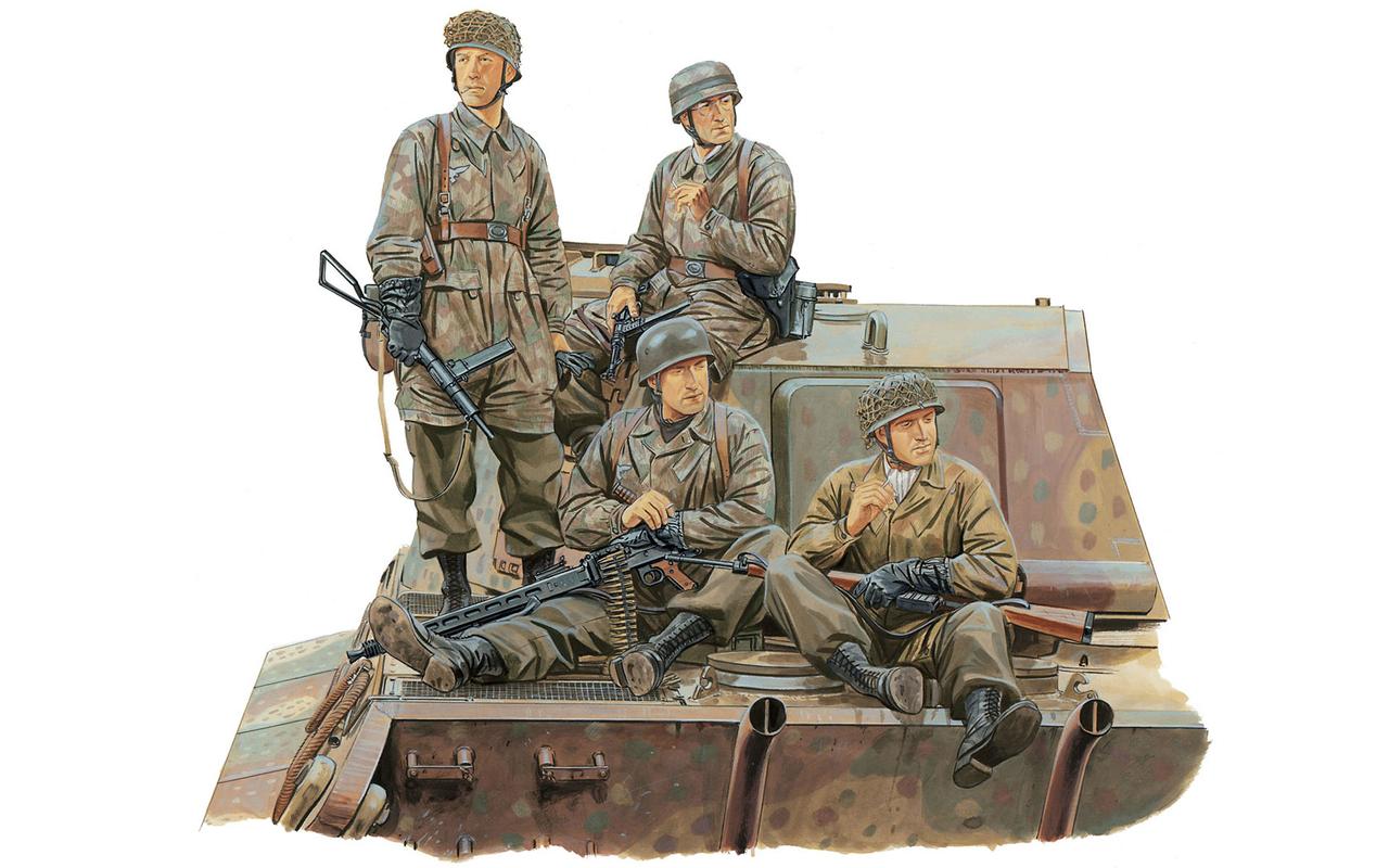 唉,现在笑,有哭的时候——1945 年,比利时,韦韦尔茨市。美国陆军第 1 步兵师俘获了一名德国第 3 伞兵师士兵。这名德军伞兵面露笑容,显得十分轻松。 德国第 3 伞兵师(3. Fallschirmjäger-Division,参见图2,徽标参见图3)是二战德军的伞兵部队,1943 年组建(部分兵员来自被解散的伞兵单位及补充兵)。不过,该师虽名为 “伞兵师”,但二战后期因盟军掌握制空权,已无法执行大规模伞降任务,转为精锐步兵师使用,以顽强防御和近战能力著称。 美国陆军第 1 步兵师(1st Infantry Division,徽标参见图4),美军历史最悠久的现役师之一,绰号 “大红一师”(Big Red One),是二战盟军主力部队,参与过诺曼底登陆、阿登战役等关键战役,以作战勇猛、攻坚能力强闻名。 韦韦尔茨市(Weywertz)位于比利时东部列日省,地处阿登山区边缘,1944—1945 年阿登战役期间,该地区是德军反攻与盟军防御的核心战场之一,地形复杂(森林、丘陵),双方在此展开激烈拉锯战。 唉,这名德国伞兵现在笑,将来有哭的时候……