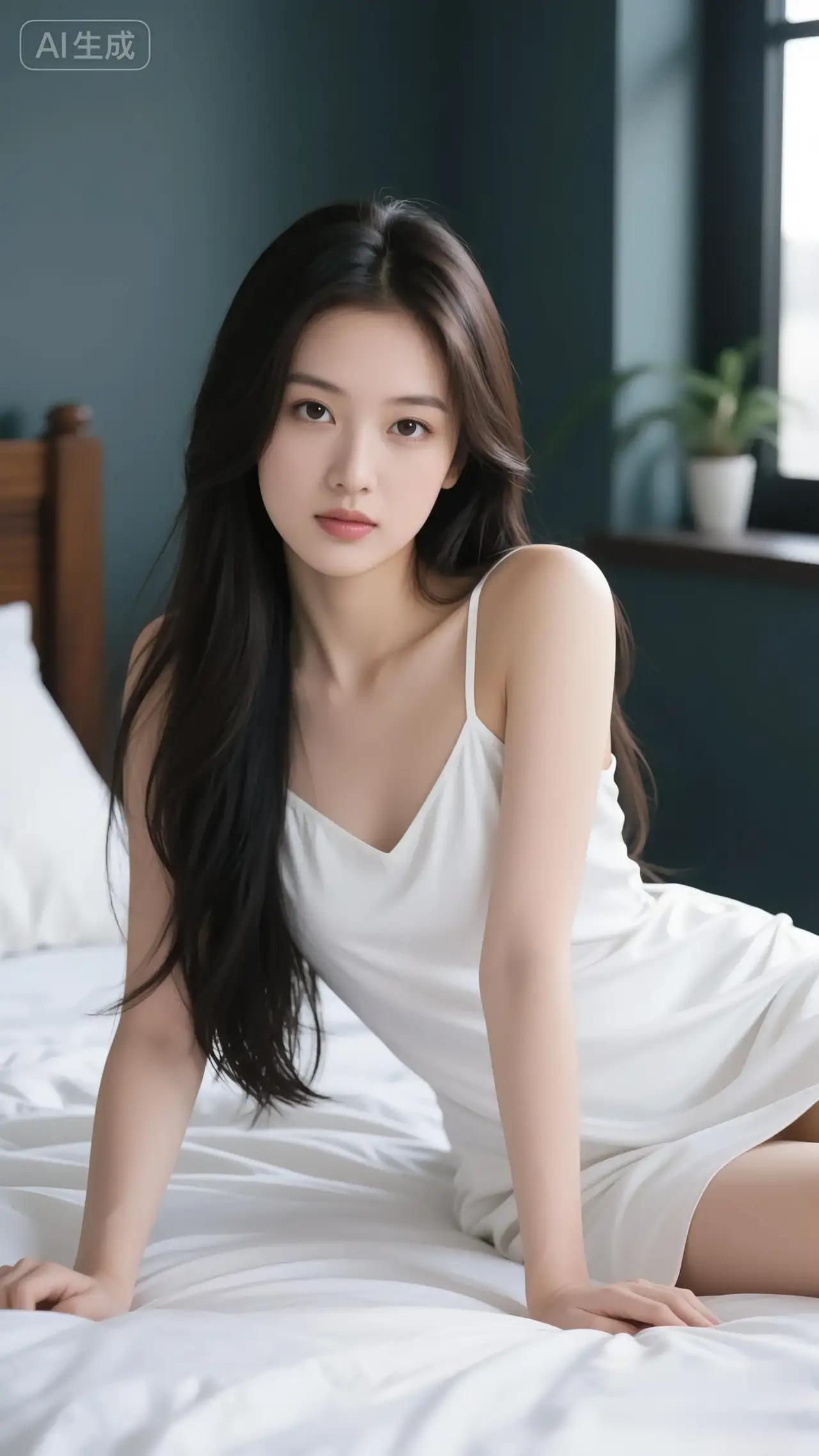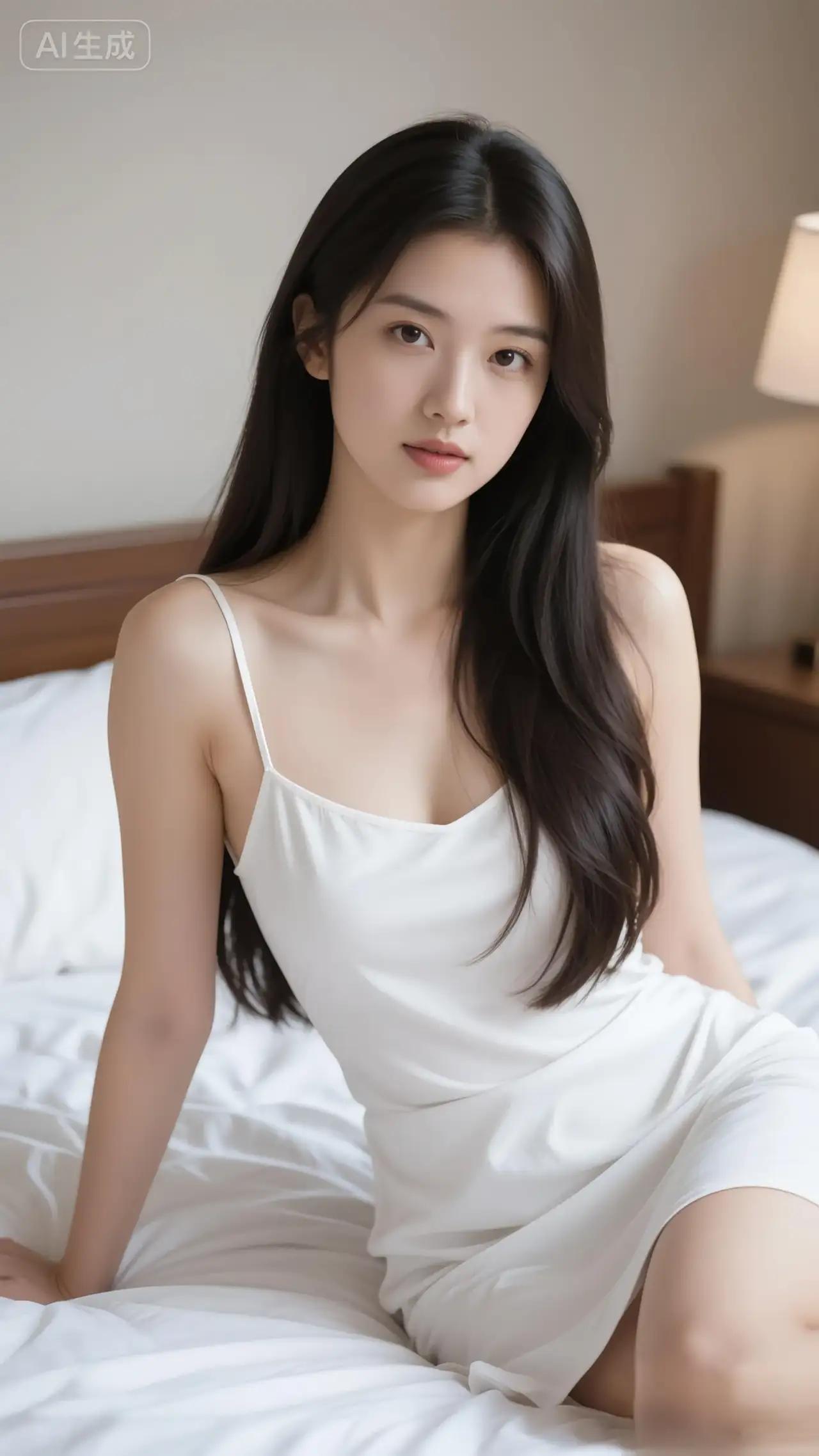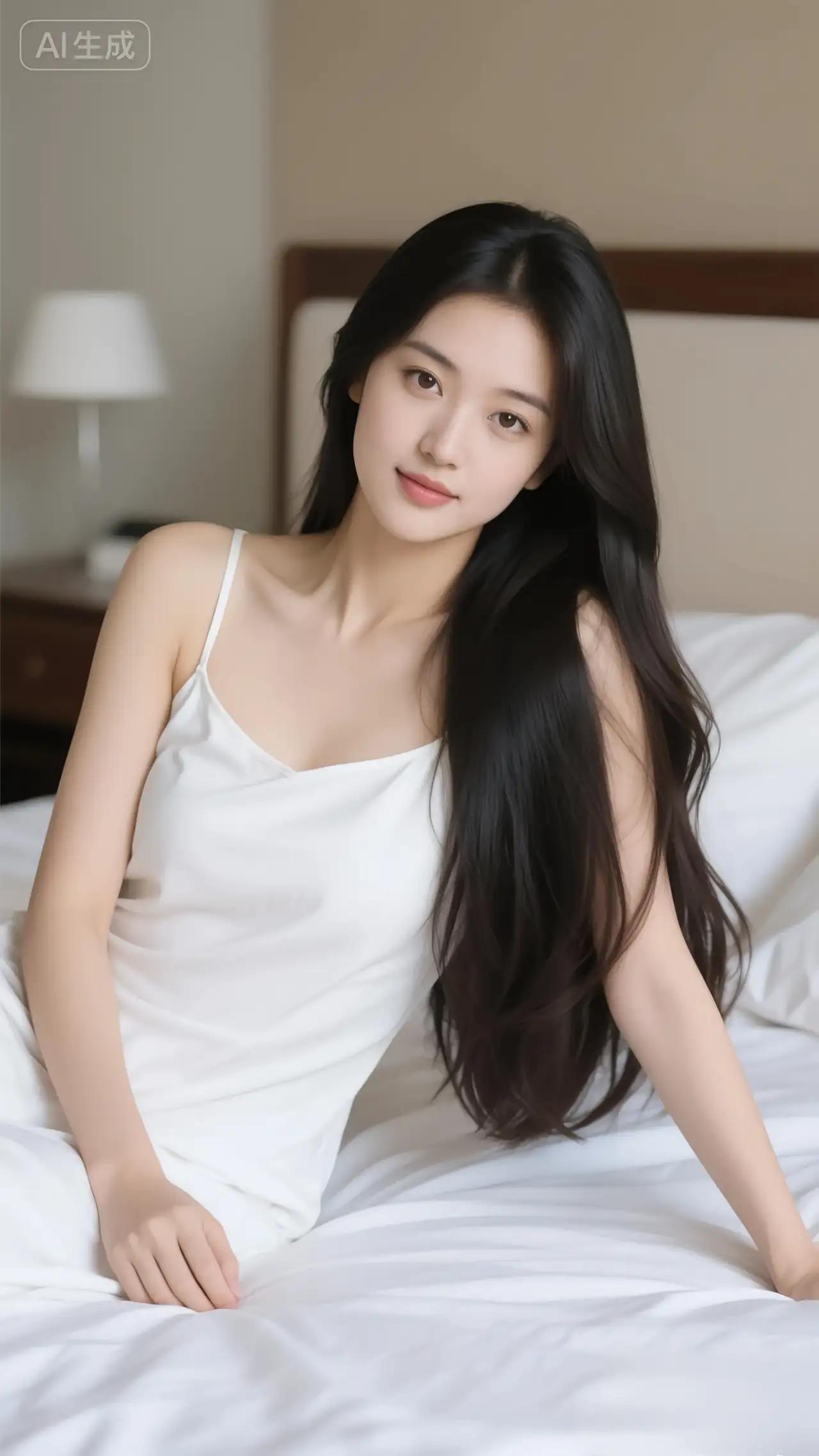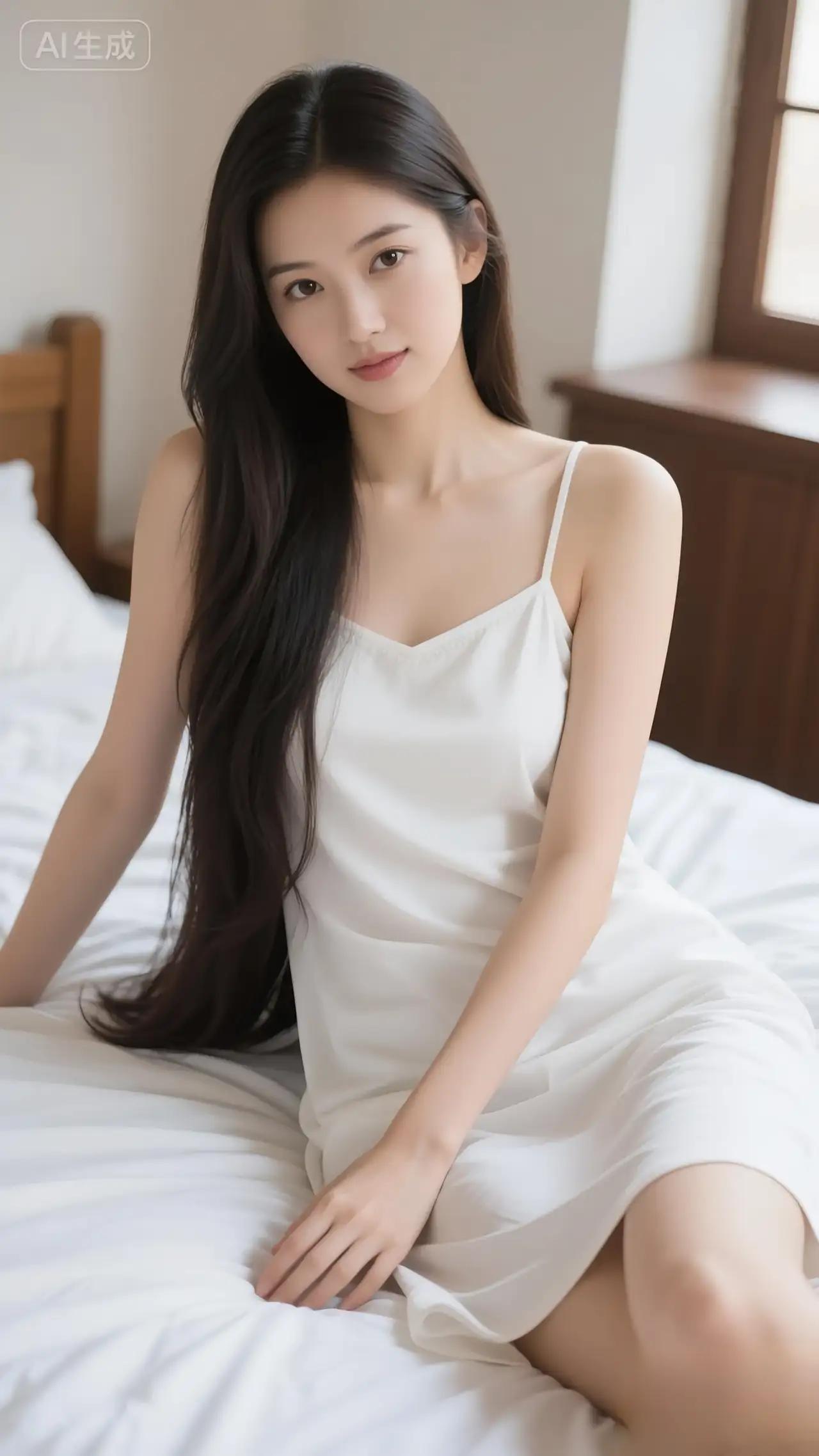 丝影映湖光缎面白裙揉进湖光里,像揉碎的月光,裹着一份清润的温柔。她倚着石栏