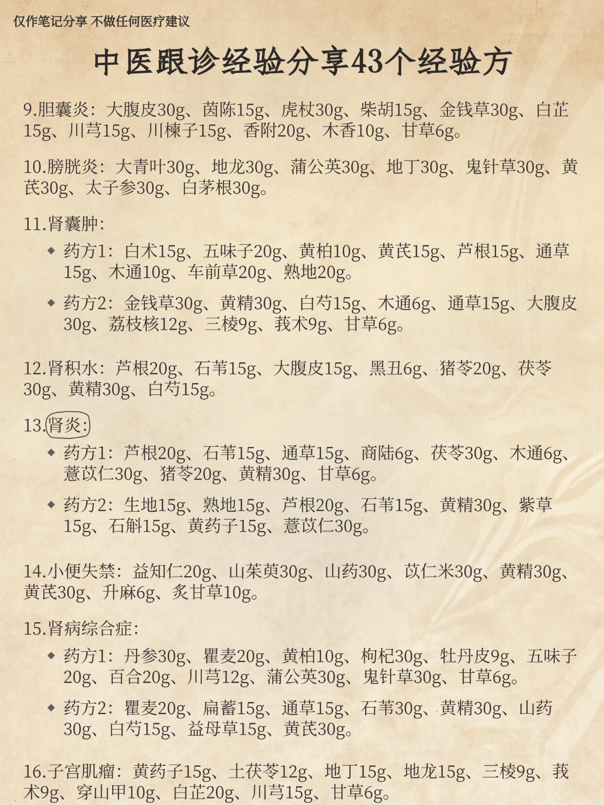 中医跟诊经验分享:43个经验方健康养生中医养生