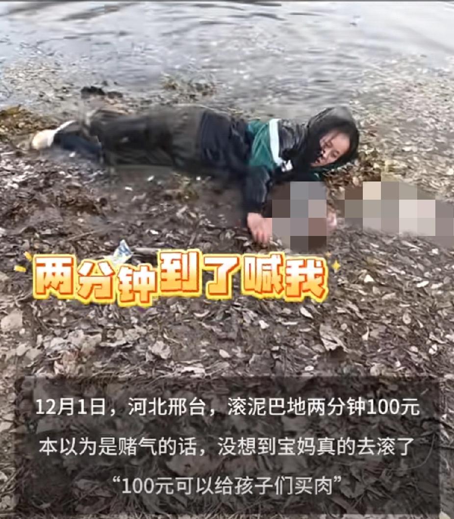 看破防了!河北邢台,一位双胞胎宝妈和网友开玩笑,如果给她100块钱,她可以在泥巴坑里翻滚两分钟,本以为就是句玩笑话,结果宝妈为了这100块钱还真的照做了,视频发给网友后,网友惊讶回复:对不起,我没想到你真的会这么做! 原来,高女士刷手机时看到那种滚泥巴赚眼球的视频,就在评论区留言,如果有人给她100块,她也可以。偏偏有位网友看见了,还真回复了她,两人就这么联系上了 对方说,那就连续十天,每天滚足两分钟,一次一百。条件是要拍清楚,不能天黑再拍,时间要实打实。这位妈妈没多犹豫,就答应了 换成绝大多数人,可能都没想到双方是认真的,可第二天网友却突然收到高女士发来的一条视频,视频中,高女士裹着一身泥,大冬天趴在冰凉的泥水里翻来滚去,动作一点没含糊。丈夫在旁边掐着时间拍,她咬着牙坚持够了两分钟,还想着别让孩子在旁边乱跑 网友本来以为这就是一句玩笑话,没想到人家当成正经活来干。看到视频后赶紧道歉,连连说别再这么折腾,钱照付,让她赶快回家取暖 高女士倒是看得很开,她说自己没有任何情绪,她只是想挣这笔钱,既然收了,自然得把事情办明白。她这句话特别真实,没有讨好,没有抱怨,她不是在给谁证明什么,只是在让家里的账更平衡一点 有网友说:这次属于是口嗨哥遇到较真姐 这事听起来有点心酸,又有点暖。我们总在网络上看到各种玩笑话,但很少去想,屏幕那头的人,是不是真的会为了看似微不足道的一百块,去做一件旁人看来很难理解的事 这位妈妈是实在人,说做就做,不敷衍,也不抱怨。她没把自己放在弱势的位置上去诉苦,而是用行动证明:我需要钱,也愿意为此付出相应的努力 那位网友的反应也挺真实——起初可能是带着调侃的心态,真看到对方照做时,反而愧疚起来。这种情绪转变,恰恰说明大多数人心里还是有善意的,只是有时候,我们低估了别人为生活所付出的认真 生活里没有那么多“何不食肉糜”的轻松,很多人挣的,就是这份实在又辛苦的钱。他们不一定需要同情,但值得被尊重
