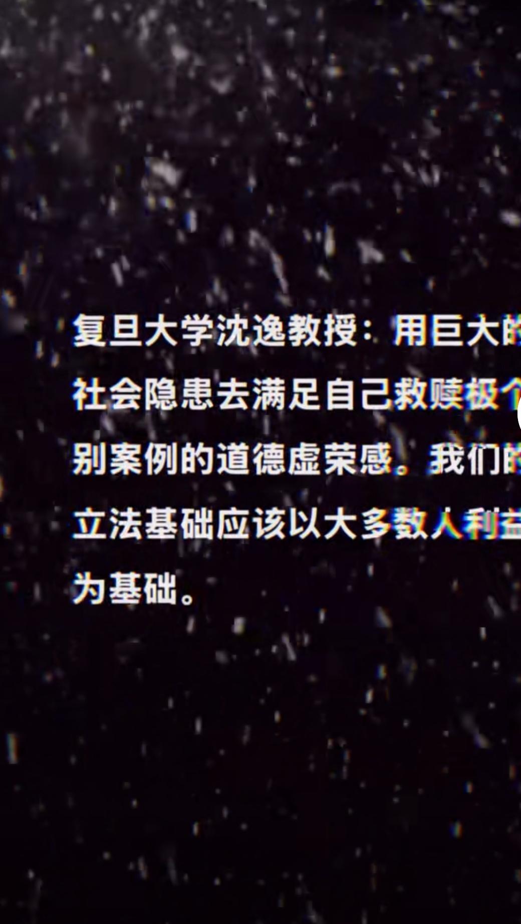 复旦大学沈逸教授指出,立法不能以少数人的道德虚荣作为基础,立法必须以大多数人的权益为基础,立法更不能以危害百姓生命安全为基础。 沈逸教授表示:民意不是跟风的野蛮人,民意是理性的建言,民意不是情绪发泄的泼妇,民意不是为私利团伙谋利的帮派。 网友表示:理性文化真的太重要了,不管是立法还是社会治理,情绪化、谋私利的声音都该被过滤,守住多数人的利益才是根本! 网友:沈逸教授这话戳中要害了!立法本就该护着大多数人的安全,凭啥为少数人的所谓“道德体面”让百姓担风险,理性立法才是真的为民。 各位读者您怎么看?评论区留言立法标准 立法问题