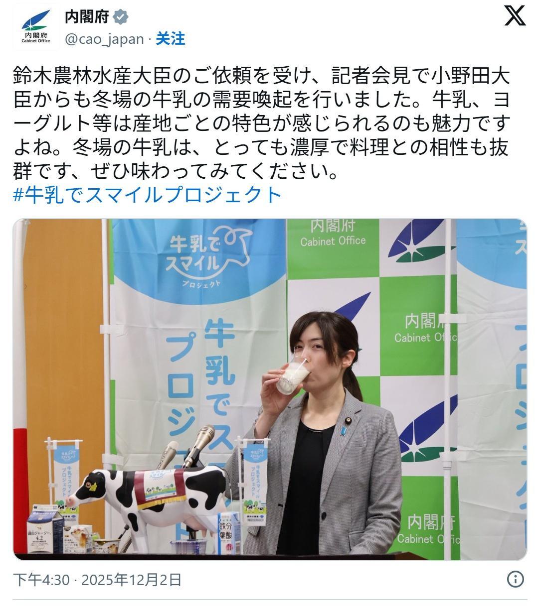 日本的这位美日混血的女大臣小野田纪美,自上任起就自带网红光环,是社交媒体关注的热点。人高马大的小野田纪美担任日本经济安全保障大臣兼外国人秩序共生社会推进大臣(也就是俗称的“边境沙皇”)。 来看一下近期这个豪爽、直率、不做作的混血女大臣在面对记者时的风格。 • 对于日本移民政策以及各大城市爆发的移民抗议活动 小野田纪美: “做坏事的人,一个都不能留下!” “对于一部分外国人违反法律、违规逾矩的行为,必须严正应对,消除国民的不安和不公平感。” “日本欢迎外国人,但前提是必须尊重日本的文化与秩序,守法者才能安心生活,不守法者绝无立足之地。” (小野田纪美的回应背景是:日本民众对外国人犯罪积累的愤怒、 假庇护申请者领取福利却不做贡献、劳动力短缺被用作引进数百万外国人的借口、发声反对移民的人会被扣上“种族主义者”的帽子或X账号被封、主流媒体试图隐瞒信息...等。) • 对于传出的近50万张中国赴日机票取消的消息 小野田纪美: “过度依赖某个一不高兴就采取经济胁迫的国家,不仅会危及供应链,还会危及旅游业。” • 记者会上,豪迈地一口喝干牛奶,替农民推广牛奶 内阁会议后,小野田纪美突然对记者说:“有件事想拜托大家!” 随即,拿起桌上的牛奶一口喝干,还爽快地“哈”了一声。“希望借着在镜头前喝牛奶、吃酸奶,带头支持农民。” (小野田纪美此举背景:日本每到冬季牛奶销量都会下滑。虽然滞销的牛奶可以改做酸奶,但近年来酸奶需求也在下降。) 网民们对于小野田纪美的接地气的风格还是很赞赏的,接下来就看她的政绩如何了。