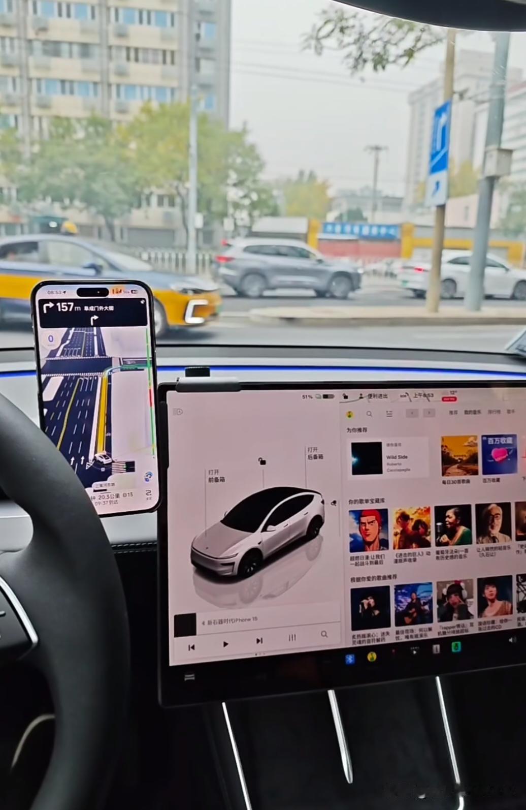 明明这么大的屏,不得不弄个破支架? 周末两天开了闺蜜的特斯拉modelyL,感觉特斯拉+百度地图真是这个model YL最大的悲哀,导航难用的要死,每次2d和3d之间切换还要手动搞才能变车道级导航,导航路线还怎么难走怎么来……导航只会走大路,而且特蠢走错了它会一直叫你走会之前那条道,就是她这个版本没升级还是怎么回事?