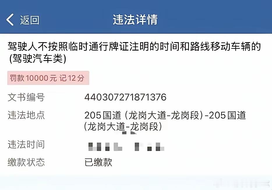 罚10000元扣12分,没看错,是一万元!这是在深圳开过期临牌上路的代价,过期临牌上路就相当于无牌上路,不罚你罚谁!(图源网络,侵删)安全出行