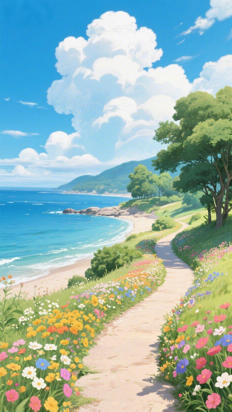 标题:海风漫山野 沿着临海的小径往前走,风里裹着咸湿的海味,混着漫山遍野的花香。云朵把影子投在海面,碎成粼粼的光,海浪拍着沙滩,像低低的哼唱。 脚下的路被花草簇拥着,红的粉的黄的花,沾着细碎的阳光,伸手就能触到柔软的风。远山在蓝天下舒展着轮廓,树影摇摇晃晃,时间好像慢下来了。 生活里的慌慌张张,好像都被这一片山海抚平。不必追赶什么,就站在风里,听海的声音,看云的形状,让山野的花香漫进心底。原来最治愈的,从来都是这人间的自然与温柔。 治愈系风景 奔赴山海