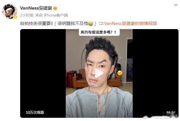 吴建豪回应瘦了40斤 吴建豪晒电梯自拍照,疑似瘦脱相脸颊凹陷引关注。他发文回应:“真的有瘦这么多吗?自拍技术很重要(很明显我不及格😂)。”