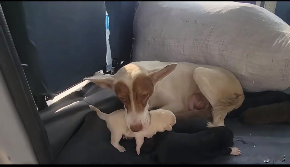 泪目了!这天一位小哥哥开车去送货,当他送完回来的时候,觉得有些累就把车停在了一条城乡道路的路边休息,结果看到一只流浪狗妈妈在旁边,于是他就给它吃了点东西,结果狗妈妈不一会儿就叼来了一只狗宝宝。 小哥哥和它玩了一会儿,狗妈妈又出去,然后又叼来一只狗宝宝,小哥哥非常开心,他觉得自己的付出得到了狗妈妈的认可,它才会把孩子都叼来想要托付给他。最终狗妈妈一共叼来了五只狗宝宝,善良的小哥哥直接收养了它们一家。 相信在他的照顾下,狗狗一家也会越来越好的,毕竟有了人照顾它们了。