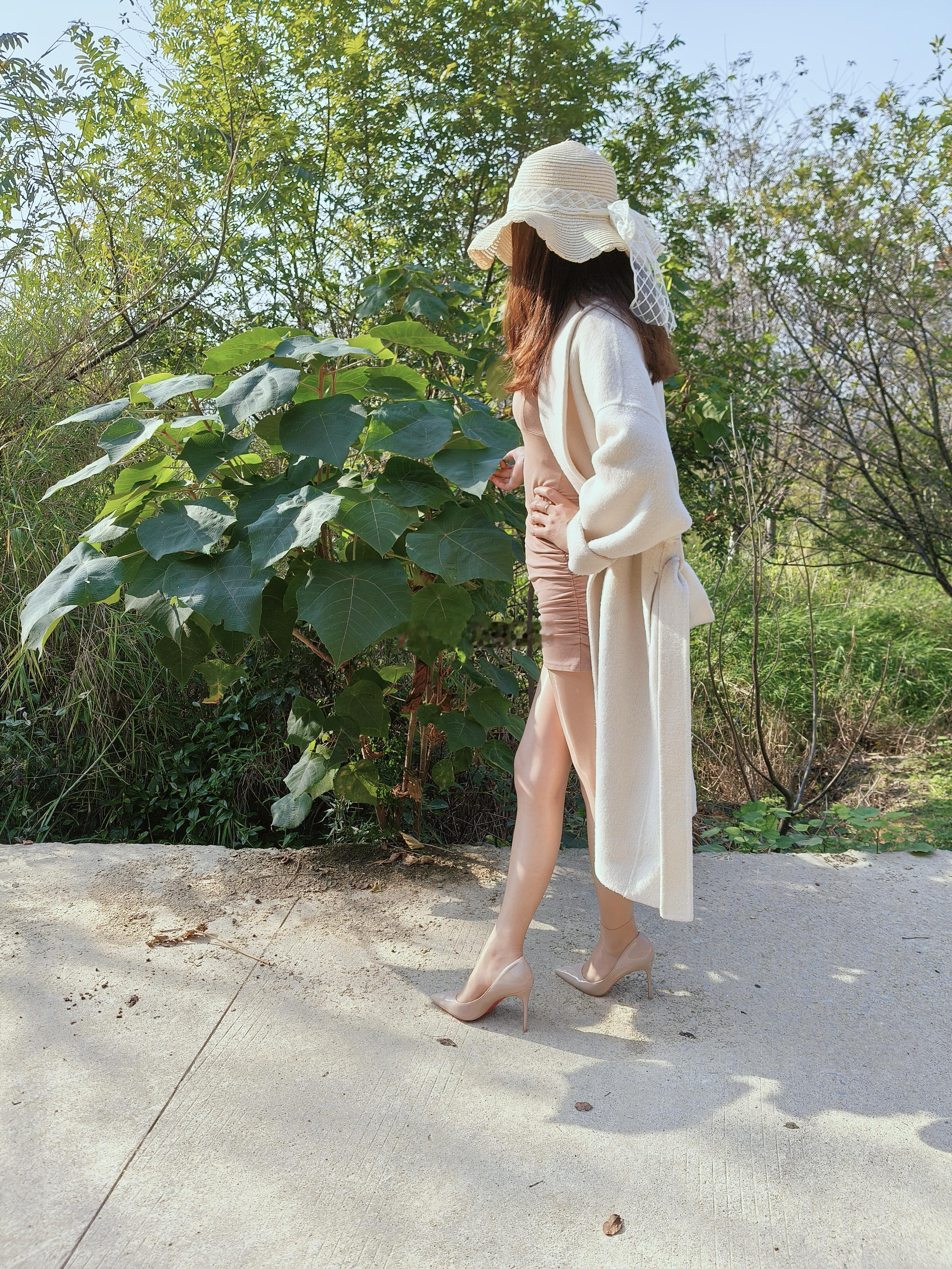 漫步乡间小路,丝袜与高跟鞋的完美邂逅。