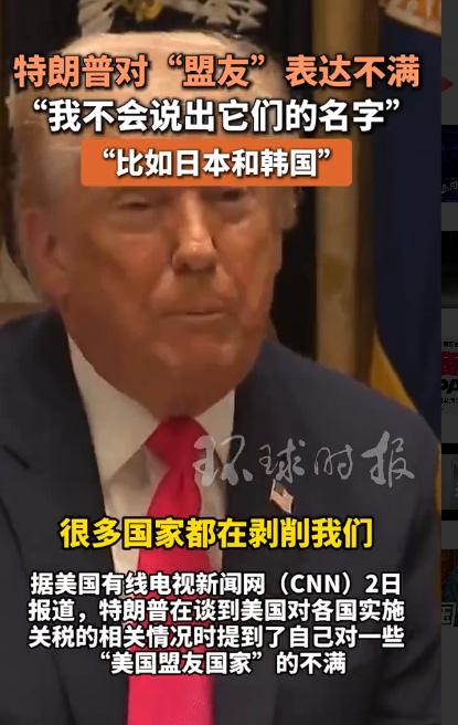特朗普对日韩盟友表达不满:“我不会说出它们的名字”“比如日本和韩国” 据美媒2日报道,美国总统特朗普在当天的内阁会议称,一些自己“不准备点名”的国家,比如日本和韩国,多年来一直都在“剥削美国”。 这话说得挺有意思,刚说不准备点名,转头就把日本和韩国摆了出来。 其实了解特朗普的都知道,他向来不按常理出牌,尤其是对盟友,从来都是利益优先。 作为美国现任总统,他第二任期刚开启就忙着亚洲行,10月还跟日本首相高市早苗见了面,当时嘴上说着日美同盟“前所未有的牢固”,转头就在关税和军费上给日韩施压。 今年7月他就给两国发过关税函,要对日本加征25%的关税,韩国也在名单里,还威胁说敢反击就再加税。 这已经成了他的老套路,一边要盟友在安全上跟美国站一队,一边又在经济上往死里薅羊毛。 他总说日韩“搭美国的车”,逼着韩国涨驻韩美军费用,还要求日本把防卫预算再往上提。 10月那次亚洲行,他就从日韩拿到了5500亿和3500亿美元的投资承诺,还有不少能源、军备订单。 这么说吧,他嘴里的“剥削”,本质就是觉得盟友给的好处不够多。 美国现在国内面临不少问题,他需要靠从盟友那拿到的“成绩”稳住支持率,所以才老拿日韩开刀。 可这招已经引起反感了,日本民调显示民众对美信任度跌到了22%,创下二十年最低,韩国人觉得韩美关系变差的比例也翻了倍。 日韩其实也挺无奈,一方面得靠美国的安全保护,另一方面又不想被榨得太狠。 日本之前甚至暗示要抛美债反击,韩国也在贸易谈判里硬扛关键领域不让步,但说到底,两边还是被绑在美国的战车上,想彻底翻脸也难。 特朗普这套“以盟谋利”的玩法,确实让美国短期捞到了好处,但也把盟友关系弄得越来越僵。 毕竟没有谁愿意一直当“冤大头”,时间长了,同盟里的裂痕只会越来越大。 以上都是个人观点,对此您有什么不同的看法,可以在评论区留言讨论!!!