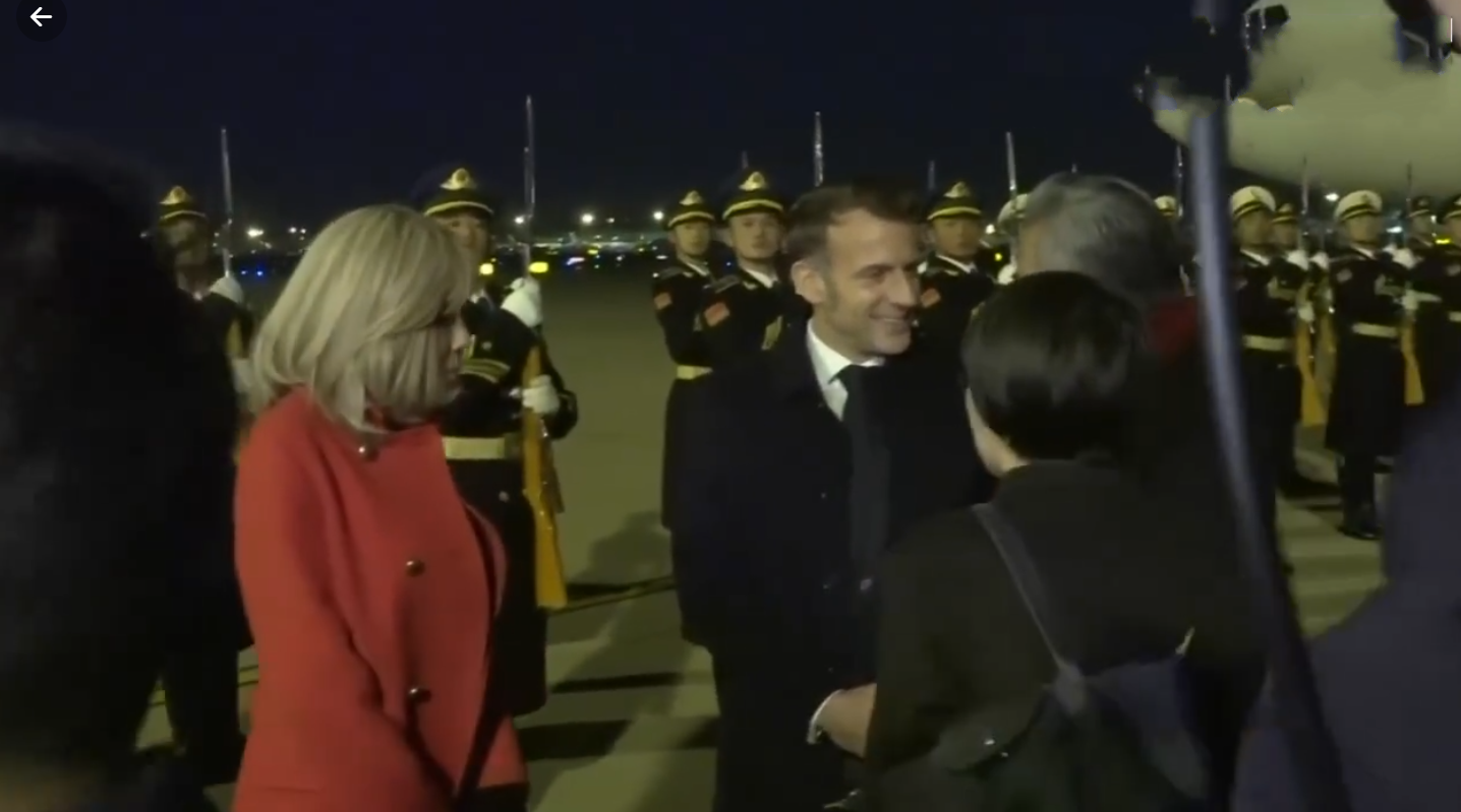 48岁马克龙携手七旬妻子抵达北京机场,走出机舱主动伸出胳膊让布里吉特挽着,太恩爱了吧!12月3日法国总统夫妇访华,傍晚准时抵达北京机场,尽管天色已晚,但法国第一夫人的着装时髦又抢镜! 只见总统先生穿着短款风衣,内搭西服套装,一身正装穿搭保暖,估计他早已了解了北京的天气,还有布里吉特夫人也是风衣造型,爱美的她并没有选择裙装而是裤装,因为北京的天气并不暖和。 第一夫人原本是想扶着舷梯下飞机,看到马克龙伸出胳膊,就配合总统老公,然后挽着胳膊一起下飞机,面对镜头夫妻俩从容又大气,简直比年轻人还恩爱呢!