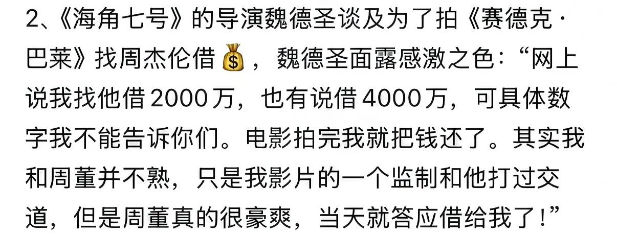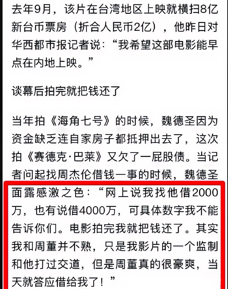 周杰伦,你真是好事做尽! 没想到周董和《赛德克·巴莱》竟藏着这样的幕后故事!这部震撼人心的中国台湾抗日史诗电影自问世以来,在全球影坛备受认可,先后提名威尼斯国际电影节金狮奖、角逐奥斯卡最佳外语片,还在某瓣长期保持8.9的高分,足见其品质上乘🔝 其实影片拍摄时遭遇了严重的资金难题,制作组四处求助无果,关键时刻周董慷慨解囊,借出一大笔钱,助力影片得以继续拍摄。周董此举,尽显仁义!当然,导演在作品上映后也迅速归还了这笔善款,片尾的“天使·巴莱”名单便是剧组对周董感恩之情的见证! 事实证明,周杰伦不仅心怀善良,乐于慷慨相助,更有一双慧眼,能精准识别优秀作品并坚定支持。如今,这部影片终于将首次以上下部形式登陆中国大陆银幕!