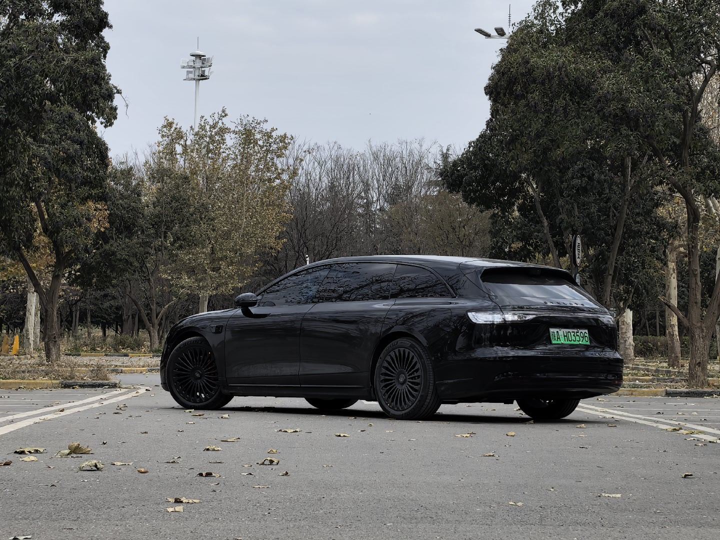 找到了一个还不错的停车场,给享界S9T拍一组图。有点可惜,阴天光线不好,车子有点