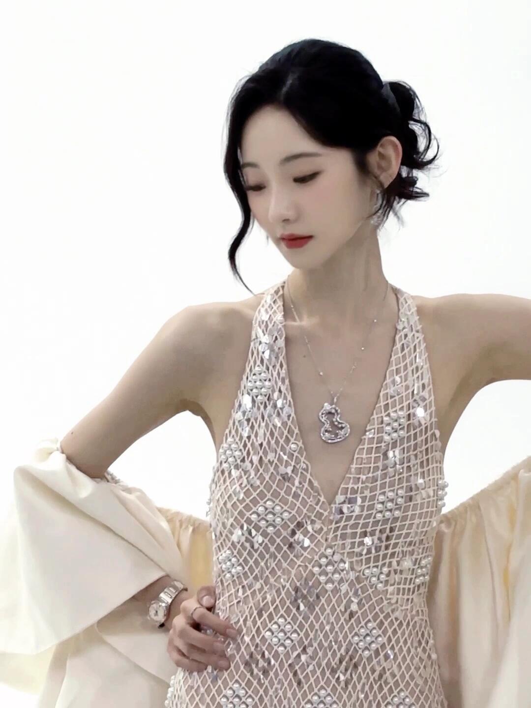 娱乐圈哪个女明星颜值最高?梁洁 深V刚好衬出舒展又好看的线条,圆润舒展的弧度特别