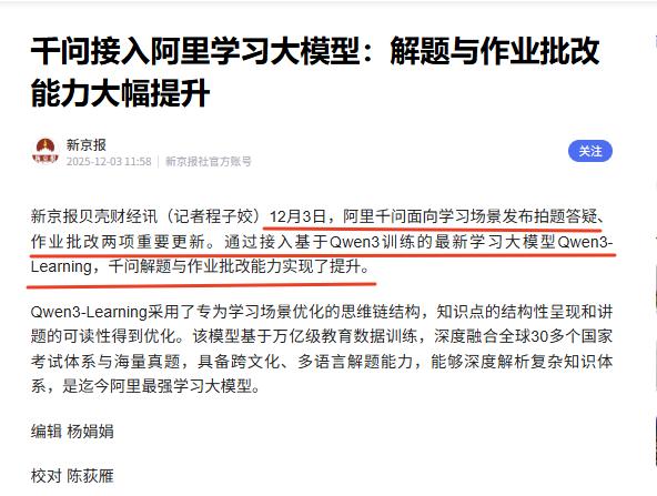 反转来得太快!当美国企业扎堆用中国AI时,这场全球科技竞争的风向彻底变了 最近美国全国广播公司NBC在报道中提到,越来越多美国硅谷企业正依托中国开源AI模型进行开发。对于这种转变,有美国AI专家坦言,“中国人是AI领域真正的创新者。” 其实相比于中国AI在大模型领域建立起来的优势,中国AI在应用方面的推进更值得关注。毕竟模型能力面向的是企业侧,C端应用关系到的是无数的普通人。 现在来看,中国AI在医疗、办公、教育等各行业、各领域的应用已经很丰富了。像今天中国AI助手阿里千问的作业批改能力还得到了多米尼克驻华大使的点赞。 就在这两天,阿里千问上线了拍照答疑、作业批改两大功能。让人眼前一亮的是,千问在进行题目讲解的时候,不仅仅是把解题过程和答案给出,更关键的是还会把知识点和考点进行拆解。 说白了,要让AI来辅助学习,关键不是让孩子怎么解决这道题,而是像人类教师一样把题目讲透,为什么要用这个公式、知识点是什么,从而通过一道题,让孩子学会一类题的解法。 多米尼克驻华大使就表示,“千问带来的能力是一项了不起的创新,它表明,人工智能不仅能够帮助成年人,也能够帮助儿童,我看到的演示是,父母可以使用这个应用程序,来帮助他们的孩子辅助作业。” 不仅如此,大使还提到中国的技术让世界公民的生活变得轻松。在他的国家,医生做手术的时候,可以获得来自中国广州专家的远程医疗协助,建议他们的医生应该做什么、不应该做什么。 不难看出,中国科技的影响力正在辐射全球,让更多普通人从中受益。