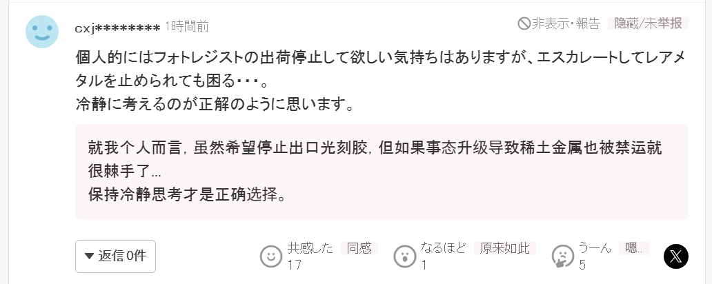 🔻日本官房长官木原稔否认了韩媒之前关于“日本要用光刻胶打贸易战”的传闻。🔻韩国光刻胶相关股票此前涨惨了。🔻评论区的老日也幽默的很:“就我个人而言,虽然希望停止出口光刻胶,但如果事态升级导致稀土金属也被禁运就很棘手了...保持冷静思考才是正确选择”、“搞这出就完了。日本可是没有资源的。除了稀土,还有磷矿、萤石。光刻胶原料里可能也有必须从中国进口的成分。外交搞不好会被全面断供哦,高市女士”、“韩国媒体怎么这么坏啊?”特朗普点名日本热点现场海外新鲜事