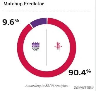 ESPN真是太看不起威斯布鲁克的带队能力了!明天国王将会在客场挑战火箭,今天ESPN对于明天这场焦点战进行了一番预测,结果由威斯布鲁克领衔的国王仅有9.6%的赢球概率,而火箭获胜的概率高达90.4%。 从ESPN的预测结果来看,ESPN完全不信任威斯布鲁克的带队能力,9.6%的赢球概率对于国王来说简直就是一种侮辱。