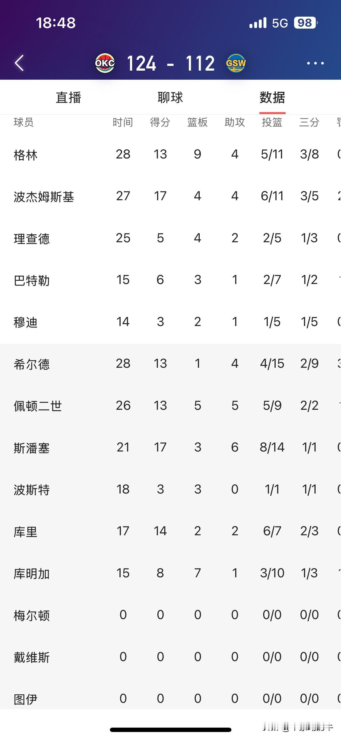 科尔的决策就是掐表换人,谁表现好就换下去,看了勇士和雷霆这场比赛,我真是气不打一处来,赛前想着库里不在,勇士大概率要输,没想到第三节他们轰下44分,还领先了16分,这时候大家都燃起了希望,结果科尔倒好,让打得正出色的库里下去,换上波杰。 雷霆本赛季20胜1负,攻防体系顶尖,亚历山大场均32.5分,命中率超五成,勇士这边库里缺阵,进攻效率跌了快8个点,科尔这换人操作真让人摸不着头脑,好好的领先优势就这么没了,最后112 - 124输掉比赛,真就输在了科尔教练的决策上!