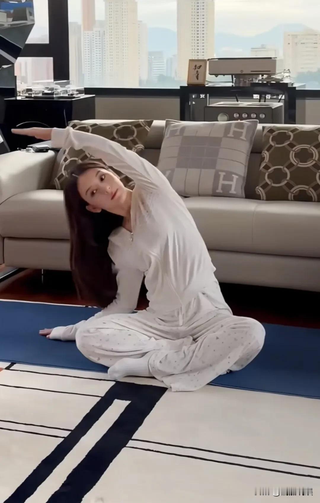 有钱人坐月子就是潇洒! 方媛晒自己练瑜伽的照片,还在月子中的她,身形就已经恢复到