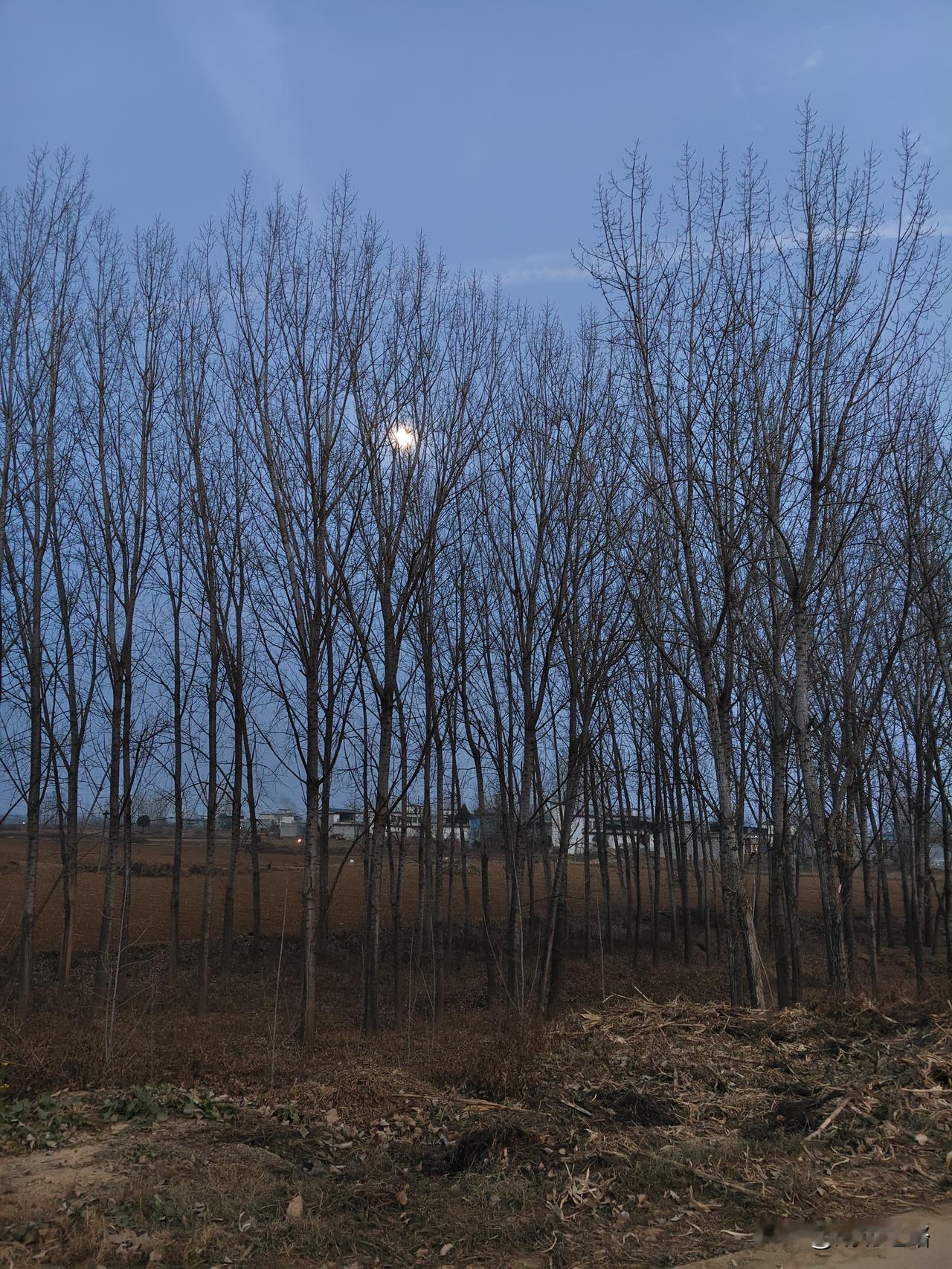 下班蹬着车往家晃,天刚擦黑,一抬头,月亮都钻树杈子里了,白晃晃的怪显眼。 路边杨树林子枝桠张着,风一吹哗啦响,跟谁在那儿碎碎念似的。没走多远,听见后边笑闹声——是村东头服装厂那几位大姐,挎着布袋子你推我搡,说今天组长多给了包瓜子。 风裹着土腥味往鼻子里钻,月亮跟着我轱辘转,这日子没多花哨,可脚底下的路,踏实。老房树影 乡间月亮