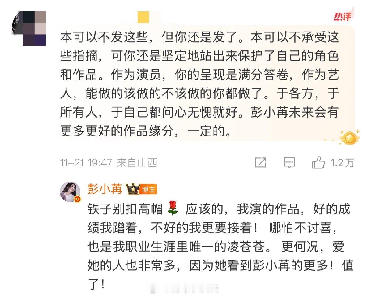 彭小苒 内娱活人 她好像真的明白,那些留言背后是一个个真心喜欢她的人。所以她的回复从不敷衍,带着温度和趣味。谢谢小苒,让我们感受到,喜欢你是件双向奔赴的美好事情。