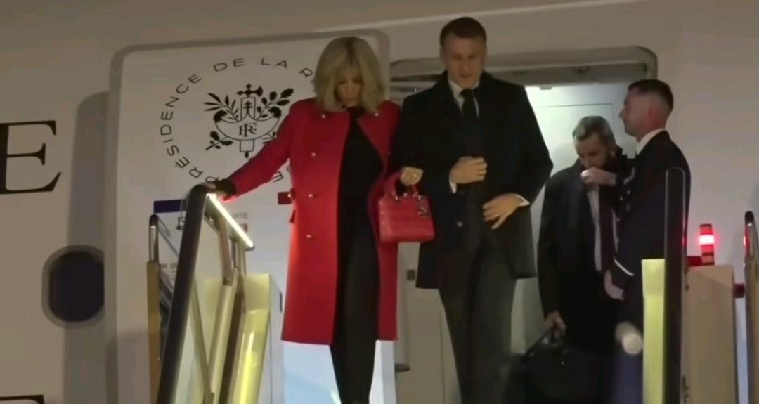 12月3日傍晚,布里吉特作为第一夫人跟随丈夫来华访问,72岁的她穿衣再次让人亮眼,穿出了法国女士的浪漫时尚。 布里吉特穿着黑色高跟鞋,黑色紧身裤,外套一件红色大衣,这件红色大衣设计的也很特别,衣服两边都有扣子,所以布里吉特的大衣是敞开的,她提的红色包也很显眼。 作为女人,布里吉特明显是那个幸福的人,她走出机舱,准备下舷梯台阶时,她的总统老公立刻做好让她搭胳膊的姿势,并陪她慢慢下了台阶。