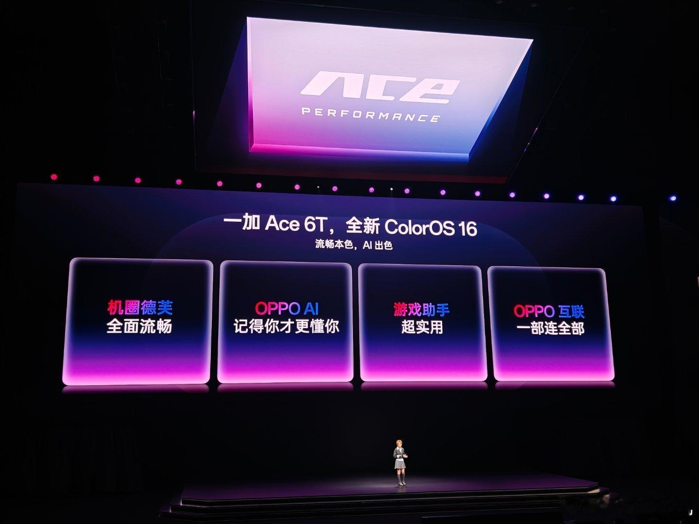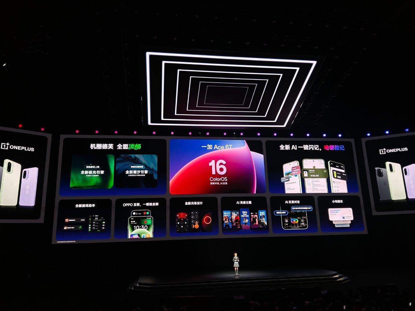 一加Ace6T 搭载全面焕新的“最流畅安卓系统”ColorOS 16,以“流畅双引擎”实现全场景操控持久丝滑,再度定义“机圈德芙”。AI能力全面进化:新增“一键闪记”,可快速提取取餐码、总结长视频、记录灵感与账目,让琐碎信息随时归档;“AI实景对话”实现指哪问哪,阅读学习、购物选择更轻松。游戏体验持续深化:“游戏流体云”支持实时查看游戏进度,切出也不错过战局;“AI游戏指令”可预录操作,实现副本一键通关,配合多项游戏助手功能,打造全方位“游戏百宝箱”。跨生态互联再升级:支持与电脑、iPhone、手表等多设备无缝连接,真正实现“一部连全部”的智慧AI新体验。ColorOS 16 常用常上新,月月有更新,助力一加 Ace 6T 在流畅、智能与互联维度全面突破。一加Ace6T新品发布你用过165Hz手机打游戏吗