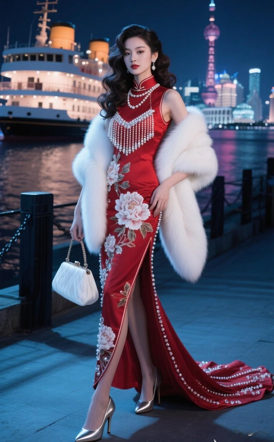 旗袍的剪裁,如同艺术的雕琢,将女性的曲线完美呈现。