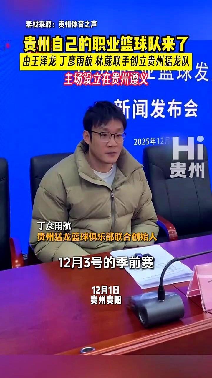 贵州自己的职业篮球队来了,由王泽龙、丁彦雨航、林葳联手创立贵州猛龙队。 这是贵州篮球的新进展,丁彦雨航是联合创始人,球队季前赛准备充分,以年轻球员为主,有凝聚力和活力,即将征战。 我特别看好这支球队,丁彦雨航的经验能带着年轻球员成长,有活力又团结的队伍肯定能打出好状态,希望他们能让更多人看到贵州篮球的潜力,未来可期。