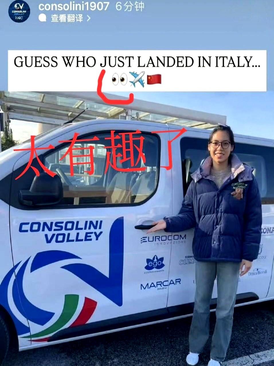 庄宇珊刚到意大利 圣乔瓦尼女排俱乐部快速发图体现她比赛的霸气气质,她伸手示意通勤车宣告意甲之旅开启 庄宇珊能去意甲打球挺厉害,希望她在那边好好发挥,把中国排球姑娘的实力亮出来,打出好成绩,给咱们长脸!