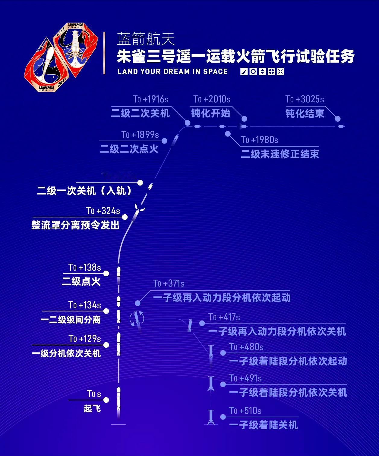 ◆2025年12月3日12时,酒泉东风商业航天创新试验区96B工位,蓝箭航天朱雀三号遥一运载火箭发射升空,按程序完成了飞行任务,火箭二级进入预定轨道,发射任务取得成功。 ◆朱雀三号运载火箭相关背景: 朱雀三号是蓝箭航天面向大型星座组网任务,自主研制的新一代低成本、大运力、高频次、可重复使用液氧甲烷运载火箭。朱雀三号遥一运载火箭采用单芯级两级串联构型,一二级箭体直径4.5米,整流罩直径5.2米,全箭长66.1m,起飞质量约560t,起飞推力7542kN。动力系统基于蓝箭航天自主研制的天鹊系列液氧甲烷发动机,一级采用九台天鹊12A发动机并联;二级采用一台天鹊15A真空型发动机。朱雀三号一子级在级间分离后可进行垂直返回软着陆,设计重复使用次数不低于20次,成熟后航区回收状态下近地轨道运载能力不低于18吨,具备互联网星座一箭多星部署能力,将为国家重大航天工程及卫星互联网发射组网提供强有力的运力支撑 ◆首飞任务情况介绍: 此次任务的飞行过程中,火箭起飞、一二级分离、二级发动机起动、整流罩分离、二级发动机关机、二级滑行、二级发动机二次起动等关键动作均按计划完成,表现稳定可靠。与此同时,本次任务开展了一子级垂直回收技术的飞行验证。根据飞行测量数据,火箭一子级在着陆段点火后出现异常,未实现在回收场坪的软着陆,残骸着陆于回收场坪边缘,回收试验失败,具体原因正在进一步排查中 ◆朱雀三号首飞意义: ♦在国内首次实现了全新总体布局的重复使用液氧甲烷运载火箭入轨飞行。突破动力、气动、飞控、结构等多专业耦合设计关键技术,对一子级创新采用燃箱在上/氧箱在下的总体布局和面对称边条翼、P型局部后掠栅格舵及流线型着陆腿外罩为典型特征的气动布局,可有效降低返回过程推进剂消耗量,提升重复使用模式下的运载能力 ♦在国内首次实现九机并联液氧甲烷动力系统的集成应用,突破了大流量推进剂稳定可靠输送技术,满足了全任务复杂剖面下发动机多次起动、深度变推需求,实现了滑行段失重状态大姿态机动下,低温推进剂有效管理和可靠沉底;解决了全过冷加注甲烷易冻结的难题,实现了射前2小时大流量全过冷加注 ♦在国内首创全新的高强度不锈钢/高性能激光焊接贮箱制造材料和工艺体系,自主开发全套不锈钢贮箱激光焊接工艺装备和产线,实现大直径超薄壁不锈钢贮箱制造成本较铝合金大幅降低80%,生产周期缩短40% ♦在国内首次实现入轨级重复使用运载火箭高精度返回导航、制导与控制技术的飞行验证。突破复杂约束条件、大范围状态变化、强不确定环境下的在线轨迹优化、姿态稳定和高精度控制技术 ♦在国内首次实现重复使用运载火箭混合冗余分布式综合电子集成设计与应用,构建面向服务的集控制、测量、健康管理于一体的开放式系统。基于高速Powerlink实时以太网构建的高带宽、高可靠性实时通信平台,通信速率超100Mbps,较传统火箭1553B提升百倍。采用汽车电子先进的高可靠计算平台研制高算力返回控制计算机,较传统运载火箭算力提升10倍以上,打造火箭航电系统与高端先进制造业相融合的新质生产力 ◆本次任务检验了朱雀三号运载火箭测试、发射和飞行全过程方案的正确性与合理性,各系统接口的匹配性,获取了火箭真实飞行状态下的关键工程数据,为后续型号优化设计、提升整体可靠性、实现子级回收及重复使用奠定了重要基础。型号团队将基于本次任务获取的宝贵数据与经验,尽快开展试验过程的全面复盘与技术改进工作,优化回收方案,在后续任务中持续推进火箭可重复使用技术的验证与应用。 ◆未来,随着低轨星座组网进入高峰期,朱雀三号将持续迭代,实现从回收重复使用的技术突破,到常态化重复使用发射的航班化运营,致力于成为匹配国家战略需求的核心运力载体,为国家航天强国建设和新质生产力发展贡献蓝箭力量。